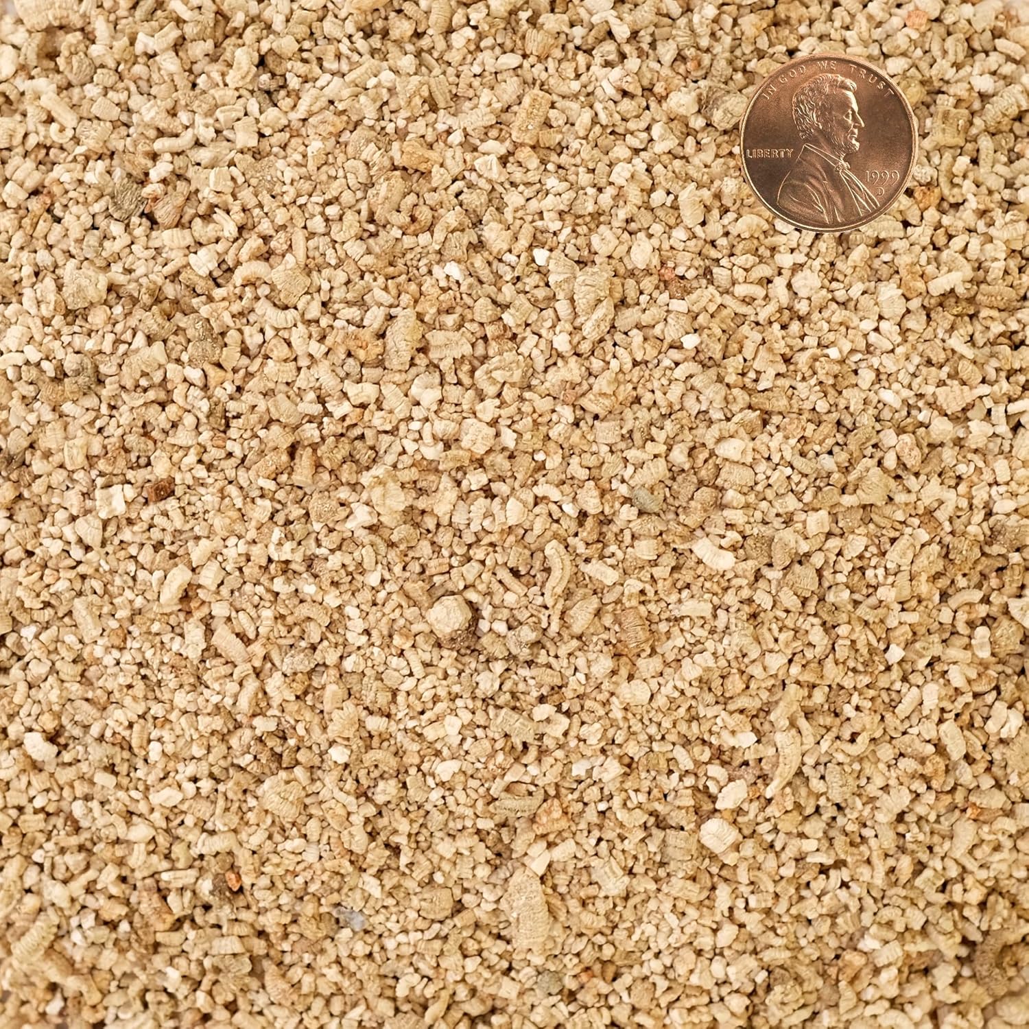 - Product Details: Particle Size: 2 mm (0.08") and smaller Density: 4.7–7 lbs per cubic ft Available in small packages and bulk vermiculite quantities