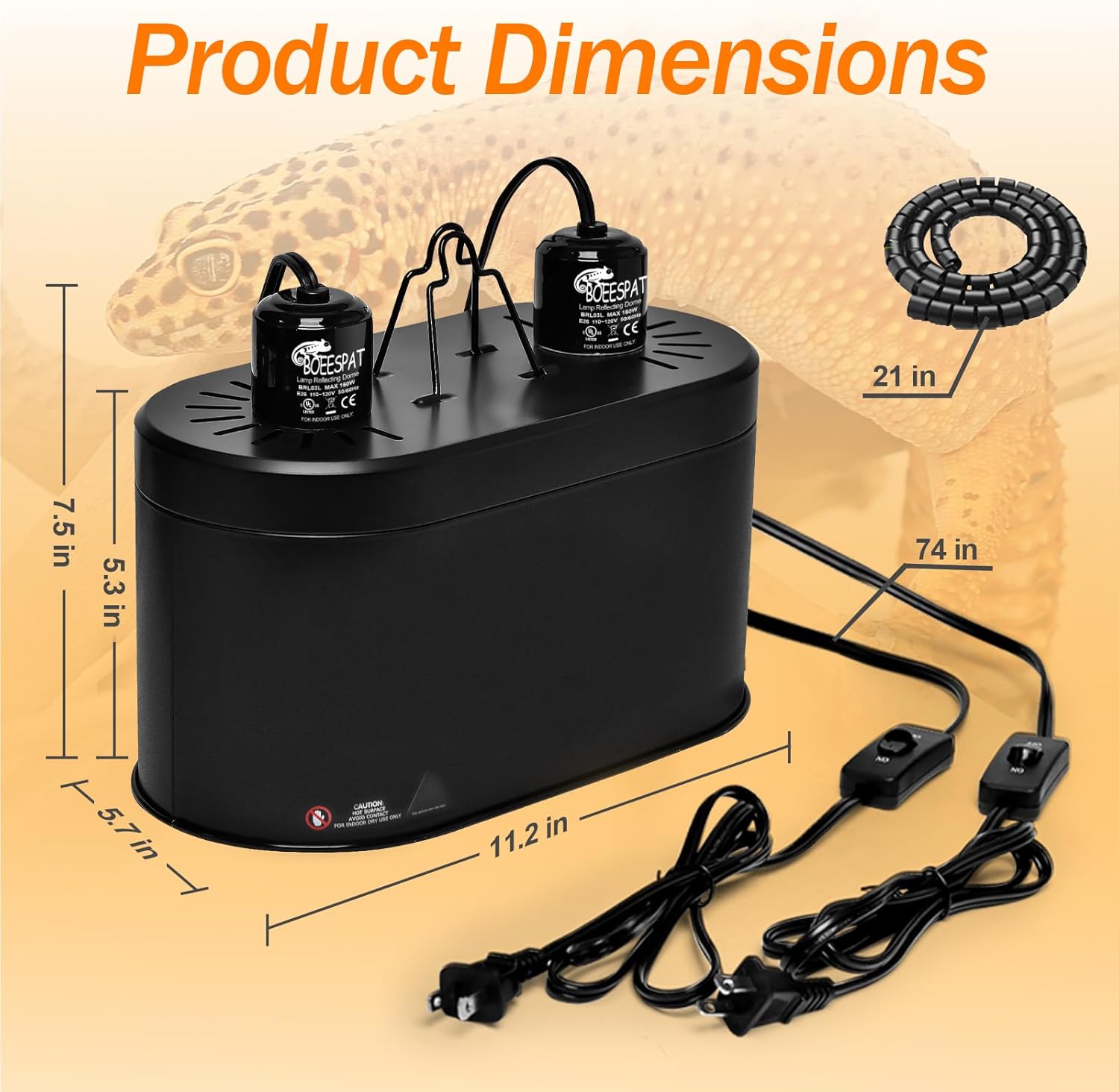 - 【Customizable Lighting Configuration】: The integrated dual reptile light fixture offers the flexibility to pair any two types of reptile light bulbs (such as heat, UVB, or basking bulbs) in one stand, tailored to your reptile's specific needs.