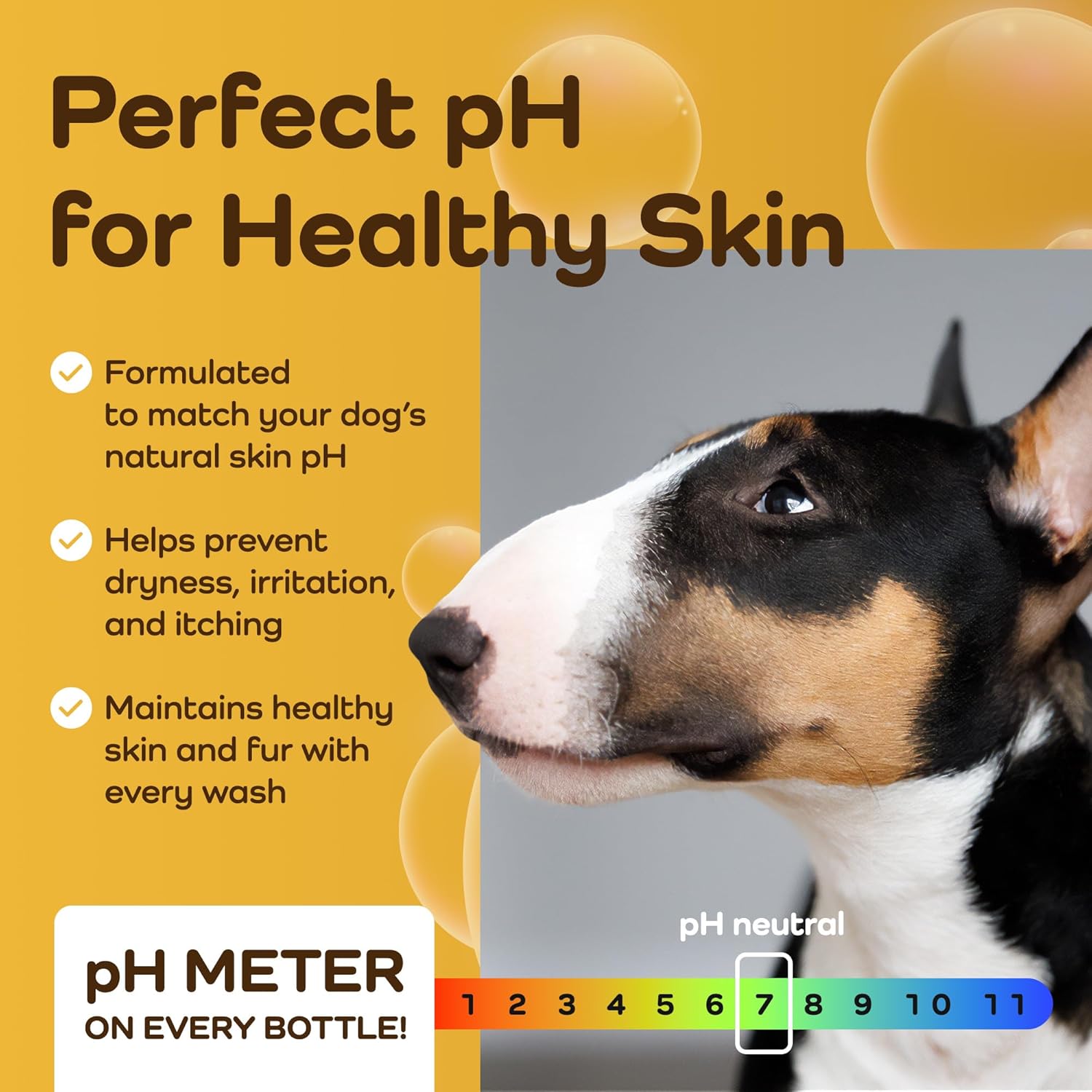 - pH-Balanced for Skin Health – Featuring a built-in pH meter right on the bottle, this shampoo for dogs ensures every wash is balanced for skin wellness. Proper pH supports the natural skin barrier and makes this a trusted choice for itchy dog shampoo needs and long-term coat care.