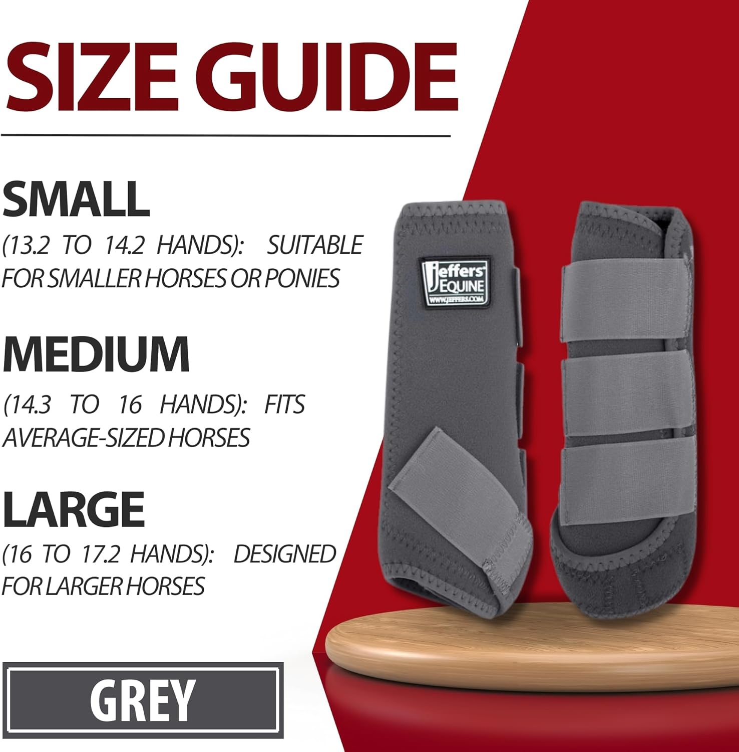 Jeffers Equine Protective Horse Boots 1 Pair Grey - Safe Neoprene Leg Guards & Comfortable Fit, Durable Strap Closures, Front & Hind Support, Equestrian Accessories for Travel & Riding - Medium