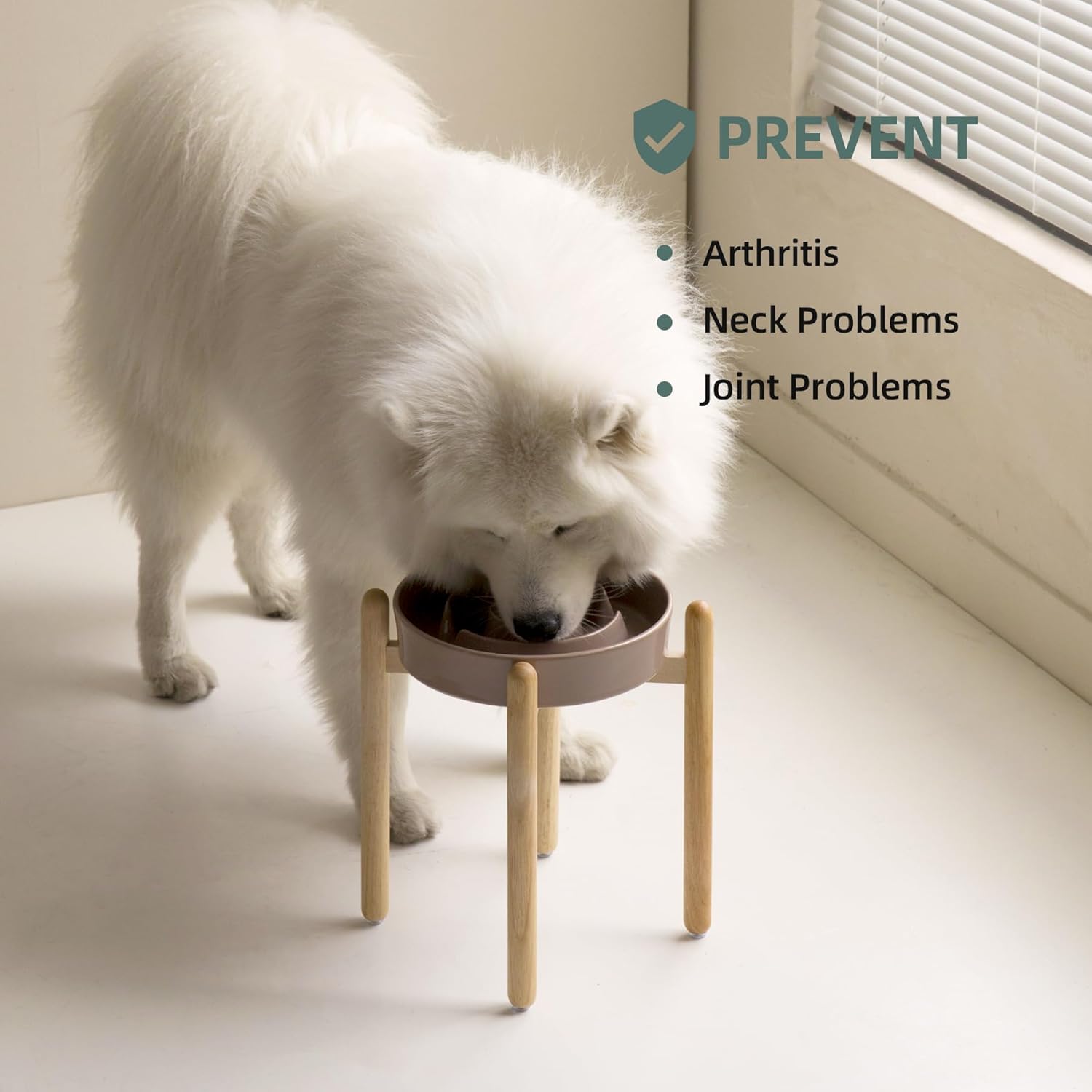 - Rasied Wooden Stand: Raised ceramic dog bowls provide dogs with correct eating posture,improved reducing bloating and neck strain with dogs,and prevents indigestion problem.