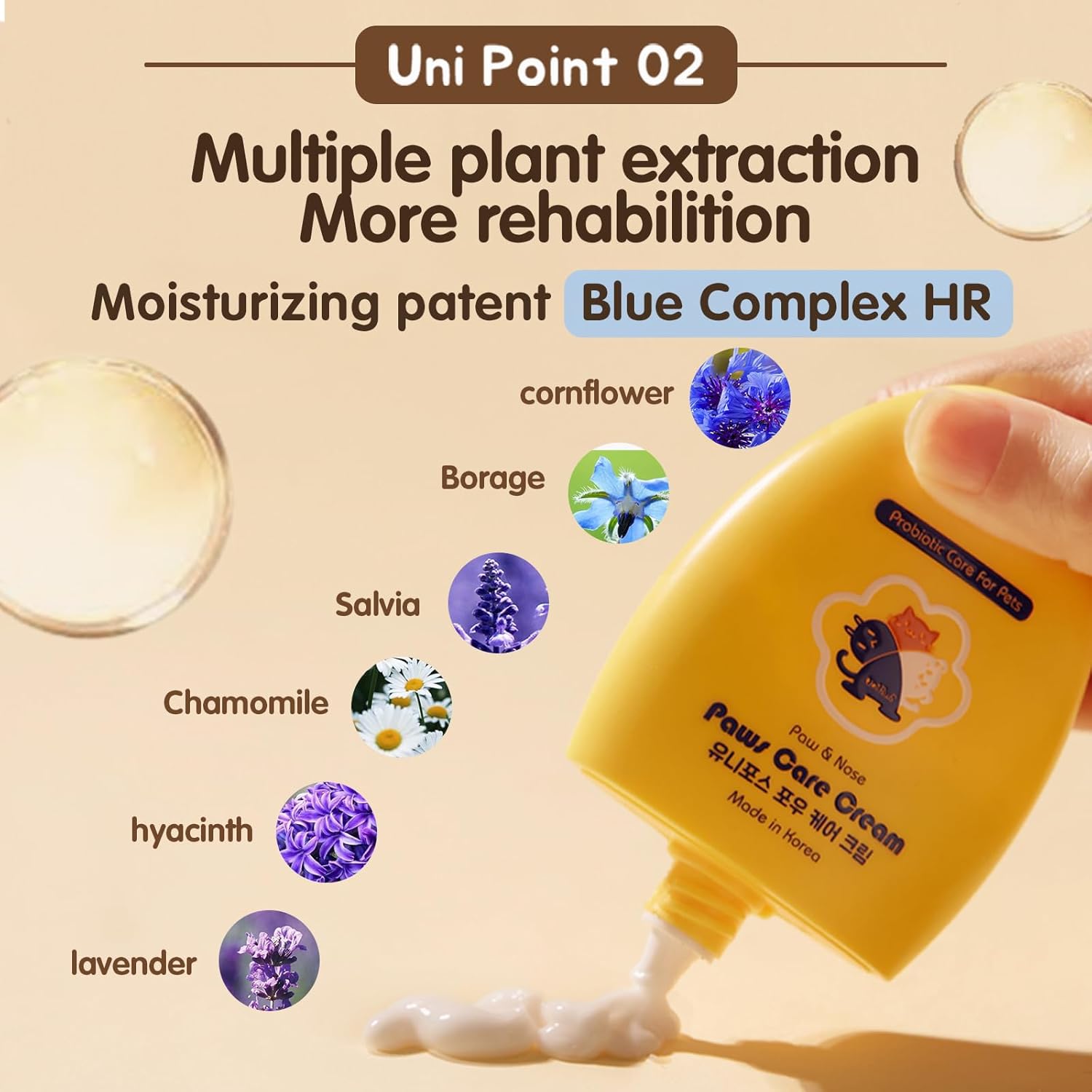 UNIPAWS Probiotic Moisturizing Cream for Dogs & Cats – Organic & Lick-Safe Relief for Dry, Cracked, Itchy Paws, Noses, Elbows & Ears – Skin-Care, Non-Greasy Formula, Made in Korea, 2.1 oz / 60g