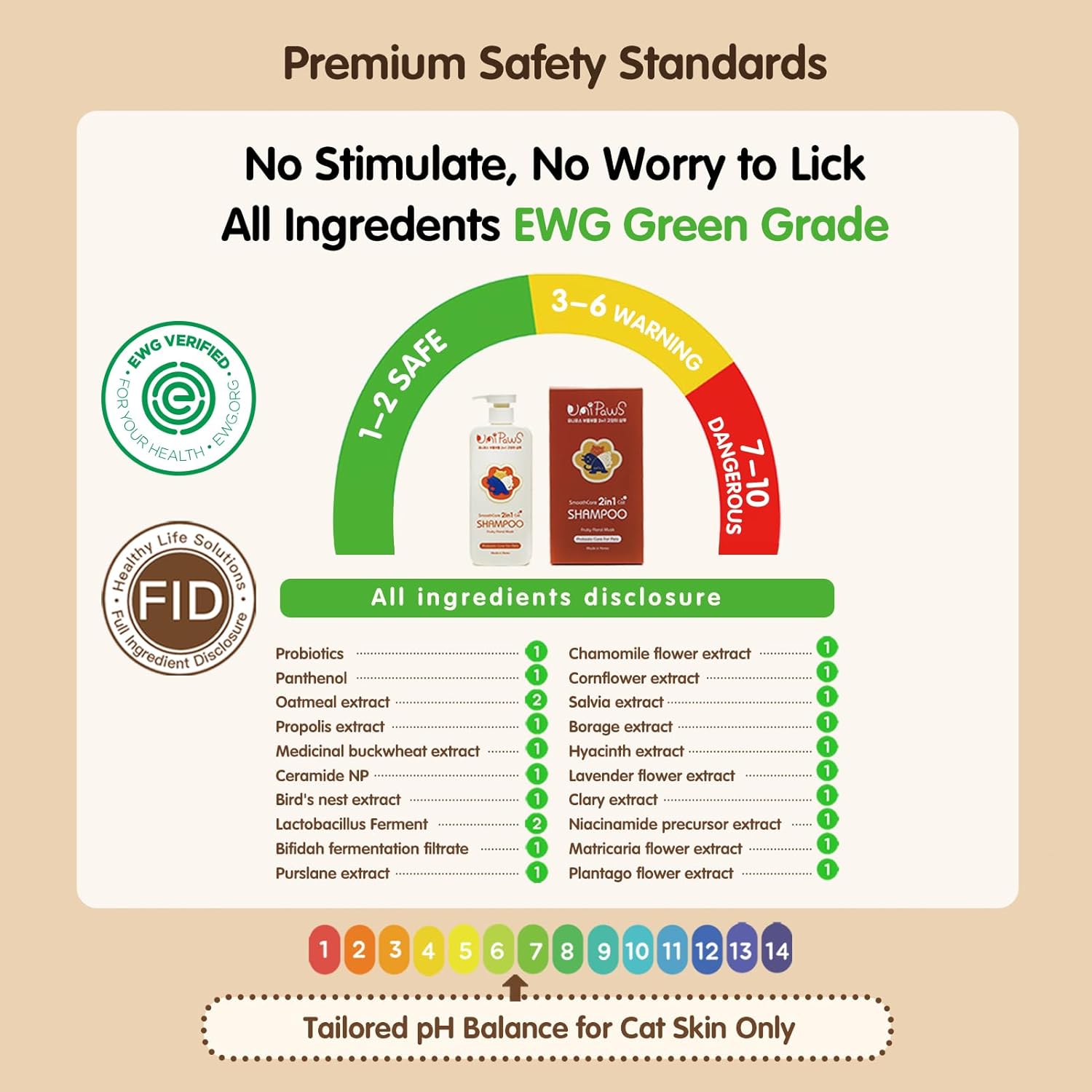 - Hypoallergenic & Tearless Formula for Sensitive Cats: Ideal for kittens, long-haired, short-haired cats, and even hairless Sphynx, this gentle, tearless shampoo and conditioner is perfect for sensitive skin. Made with natural ingredients like probiotics, oat, and propolis, it nourishes while leaving a fresh, shiny coat. Lick-safe and certified by the Korean Department of Animal Medicine, it provides peace of mind for responsible pet owners. Plus, it’s EWG Green Grade certified and comes with full ingredient disclosure (FID) for complete transparency.