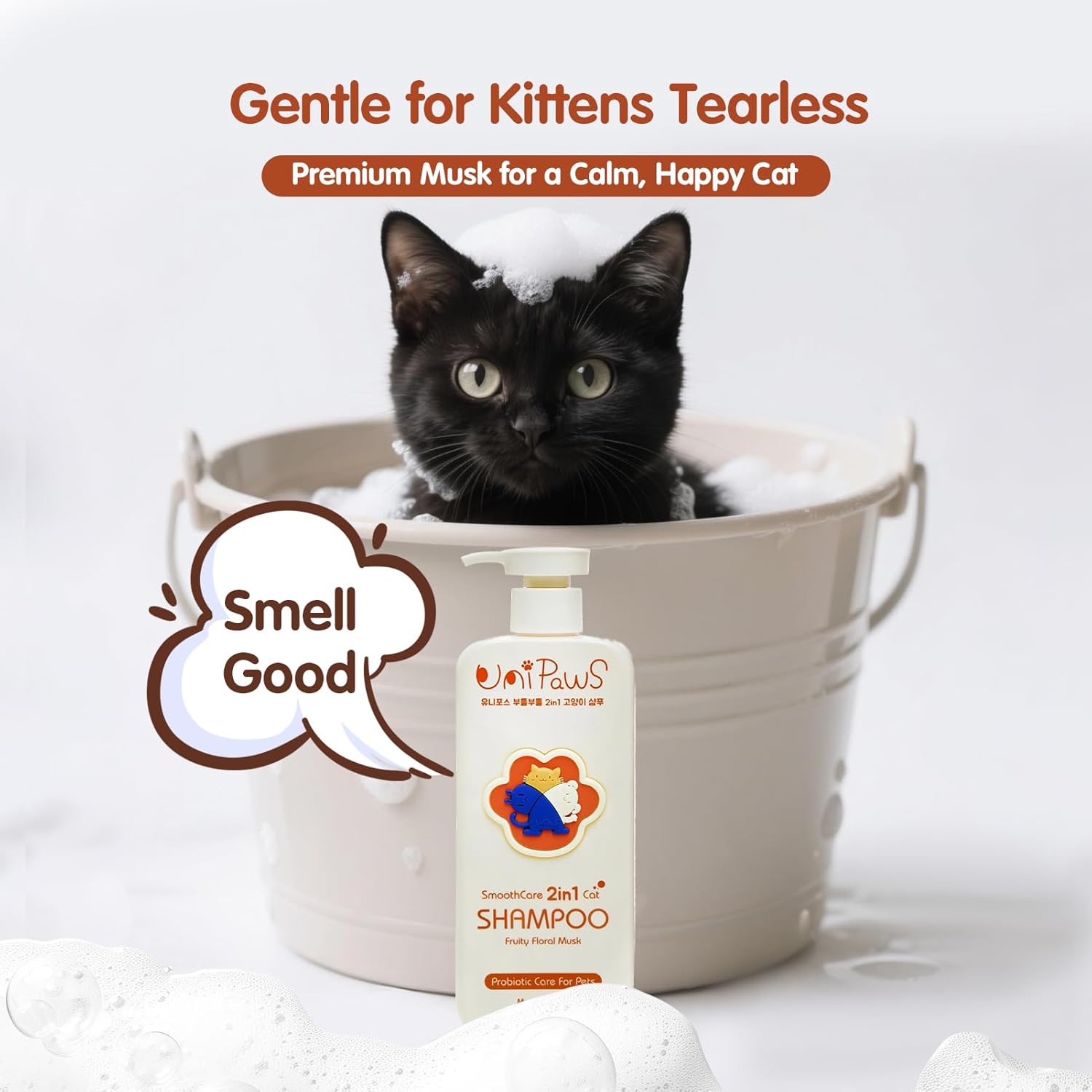 UNIPAWS Cat Shampoo & Conditioner 2-in-1, EWG Verified, Anti-Dandruff & Deshedding for Soft and Shiny Coat, Probiotics Smoothcare for Itchy, Dry Skin, Gifts for Cat Lovers, Made in Korea, 16.9 Fl Oz