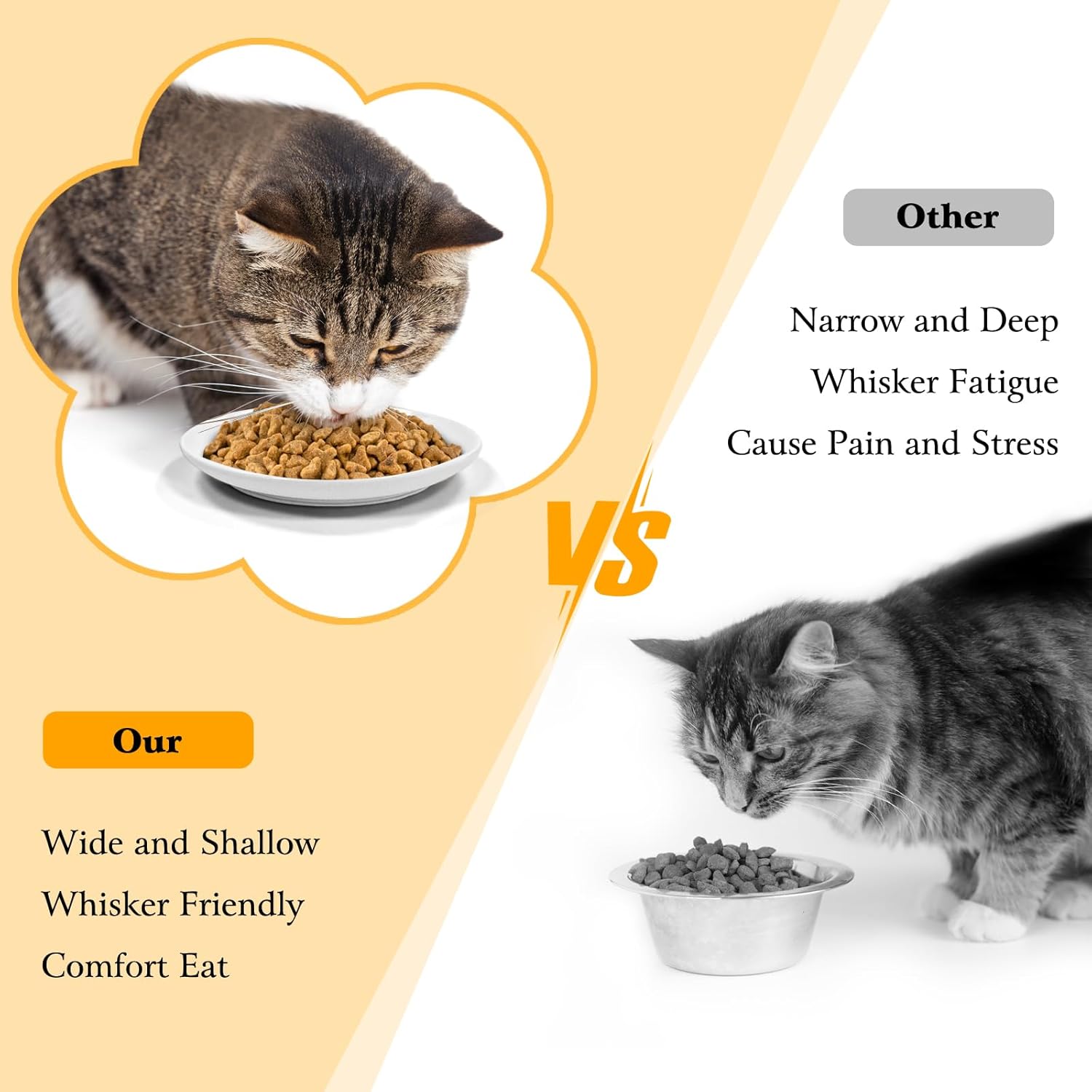 - Cat Bowls Whisker Friendly:The flat cat food dishes with a wide and shallow round design(6 inches wide, 0.8 inches deep, 100ml capacity).Not only keeps the face clean and tidy, but also relieves the cat's whisker fatigue, creating a comfortable eating environment for the cat