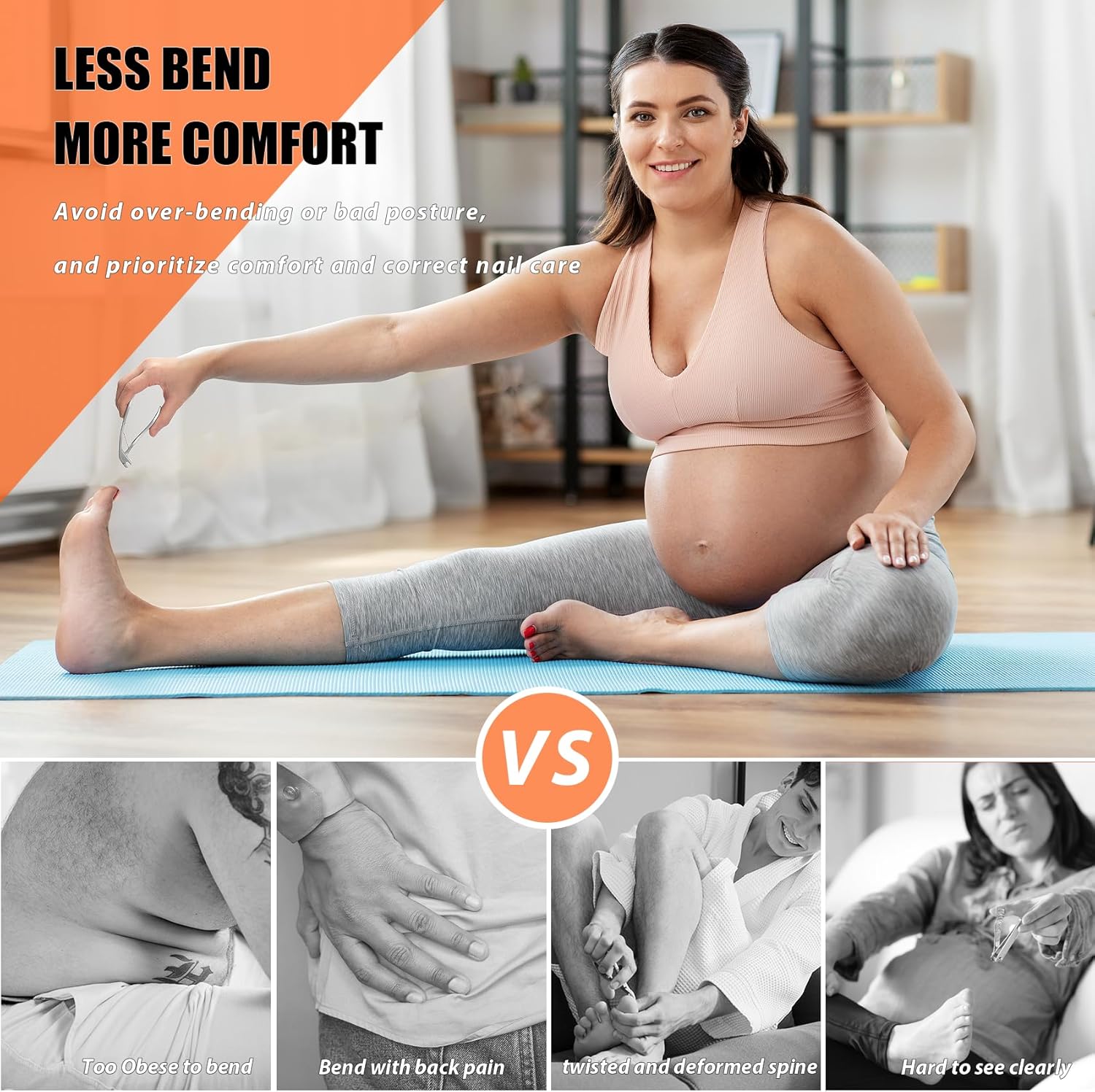 - Less Bend More Comfort - Angled head design avoid over-bending or bad posture, and prioritize comfort and correct nail care. No more twisting and bending your body to cut your toenails, perfect for seniors, men, women, adults, pregnant women, obese and more.