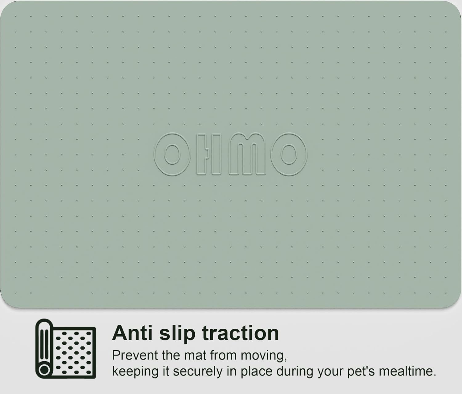 OHMO Dog Food Mat, Silicone Waterproof Cat Food Mat, Non-Skid Spill Proof Pet Feeding Mat for Food and Water, Easy to Clean Dog Placemat(Sage Green, 23.6" x 15.8")