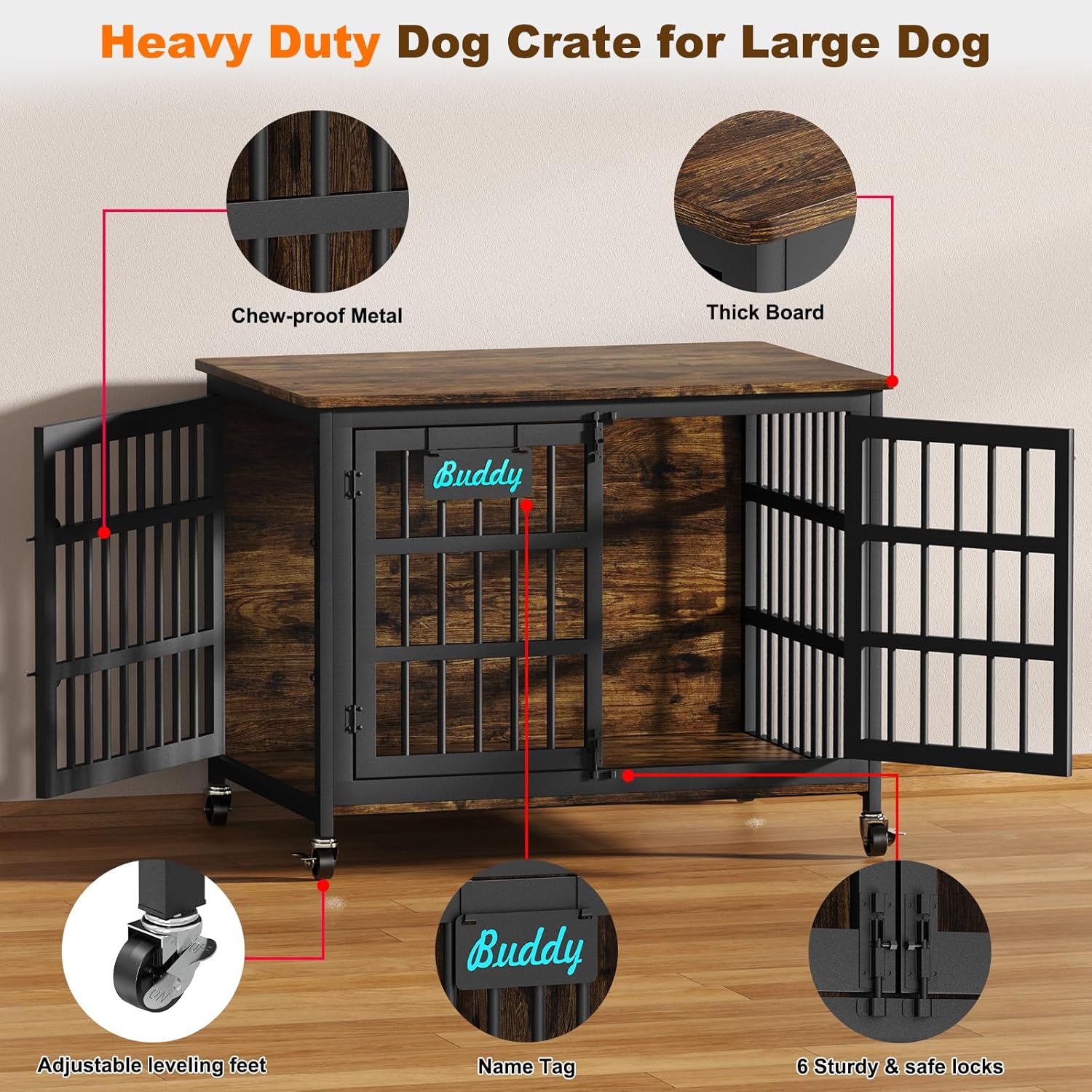 - Special Feature : Furniture-style dog crate, Multiple Slide Lock Guarantee, Spacious and Cozy Interior, Super-strong and Sturdy Furniture-style dog crate, Multiple Slide Lock Guarantee, Spacious and Cozy Interior, Super-strong and Sturdy