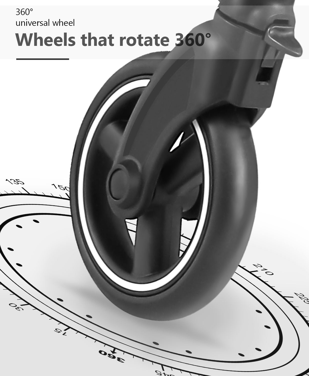 - [Superior Wheel Design for Smooth Rides] - Navigate with ease thanks to our pet stroller's robust wheel system; It boasts a 5.5-inch front wheel diameter for agile maneuvering and a 6-inch rear wheel diameter for stability, complete with reliable rear wheel brakes for safe strolling