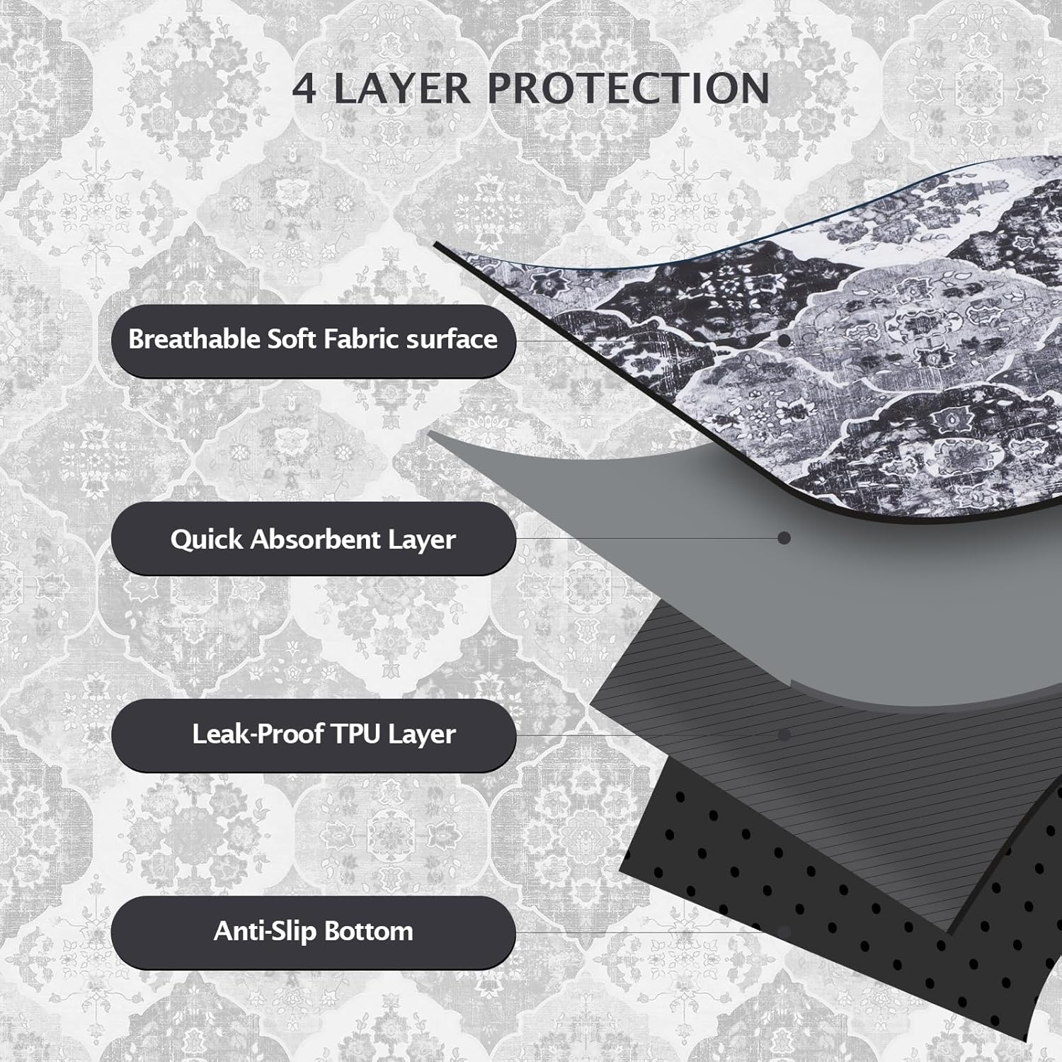- 【Superior Absorbency】Washable dog pee pads made of multiple layers of waterproof and breathable material, leak-proof. Ensure your floors, seats and beds stay dry all night long.It’s also pet-friendly pads, using soft material to provide comfort for your puppy. Protects the floor and allows pets to lie down more comfortably.