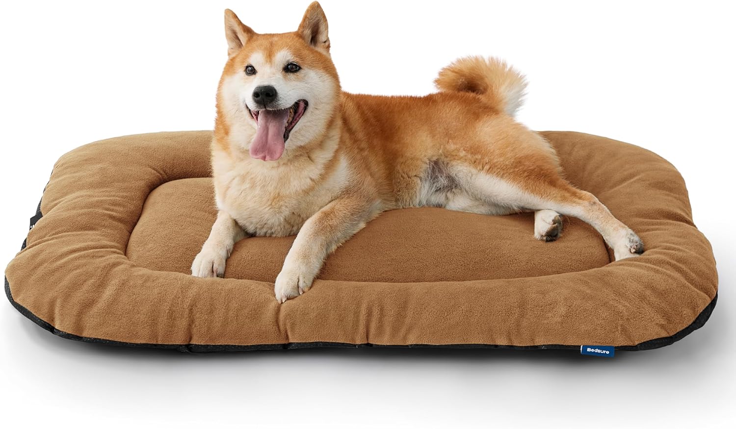 Bedsure Washable Dog Crate Pad for Large Dogs, Anti-Slip Puppy Kennel Dog Bed for Crate - Ultra Soft Fleece Flat Thin Pet Mat (Not Chew Proof), Brown 35"x22"