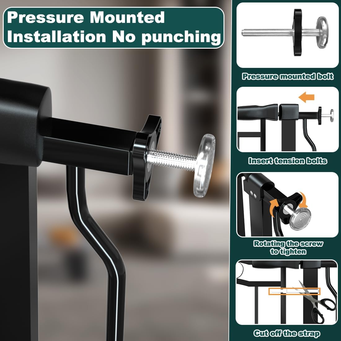 - 【No Drilling Installation】This baby gate features adjustable pressure bolts for easy, damage-free installation and removal. Watch the installation video on our homepage.