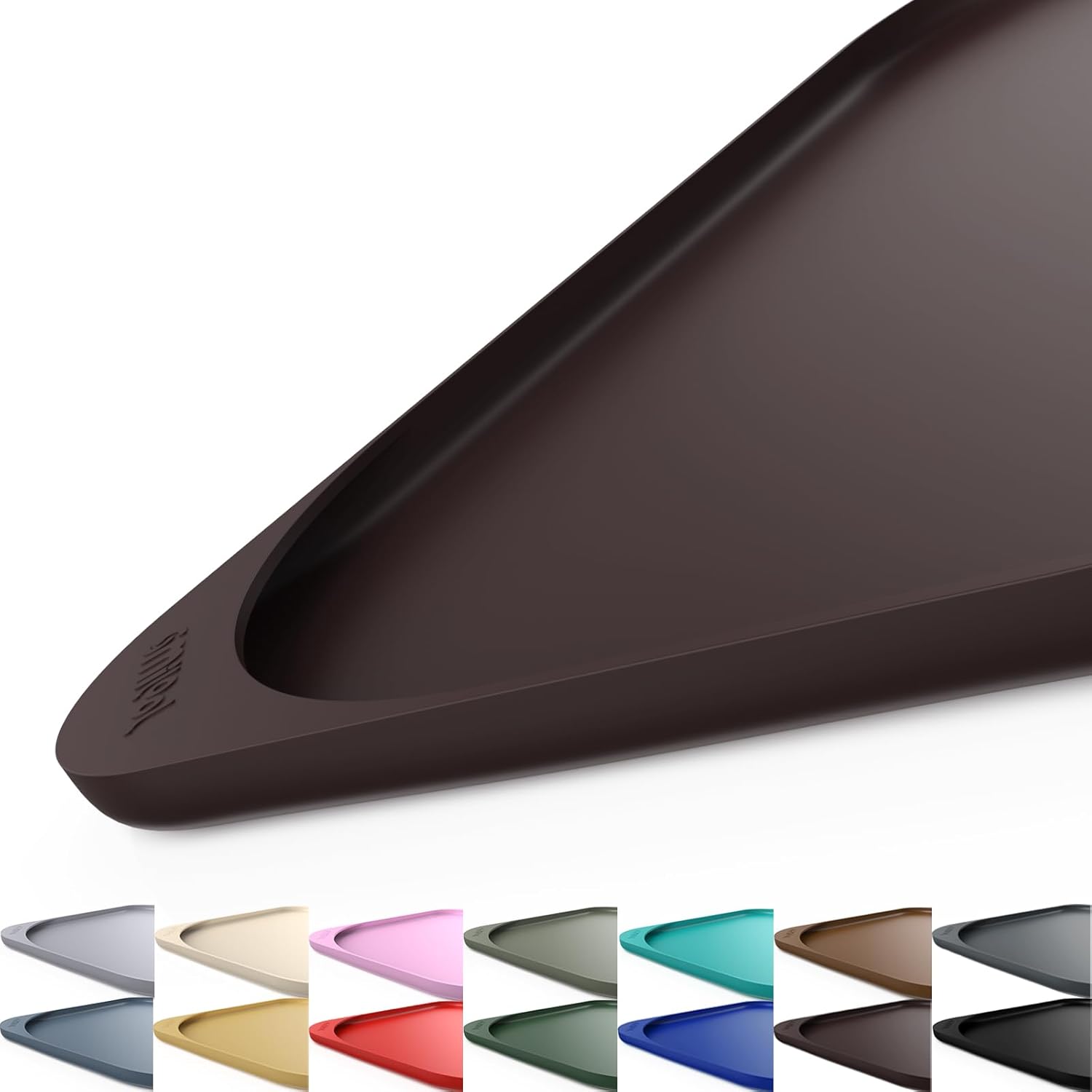 Silicone Pet Feeding Mat with Raised Edge & Residue Collection Pocket for Food and Water, Dog Bowl Mats, Cat Bowls Placemat with High Lip for Floor Waterproof, 22 x 14 x 0.8 Dark Brown