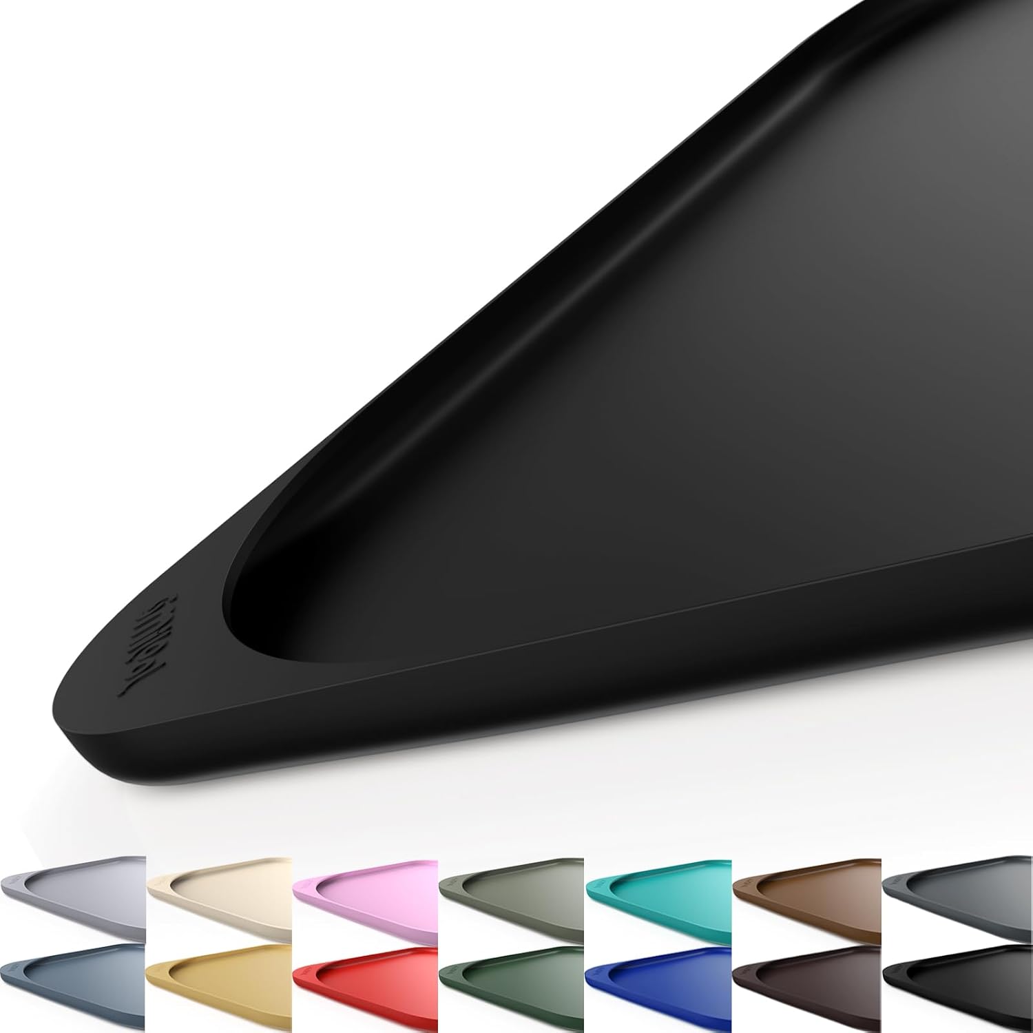 Silicone Pet Feeding Mat with Raised Edge & Residue Collection Pocket for Food and Water, Dog Bowl Mats, Cat Bowls Placemat with High Lip for Floor Waterproof, 22 x 14 x 0.8 Black