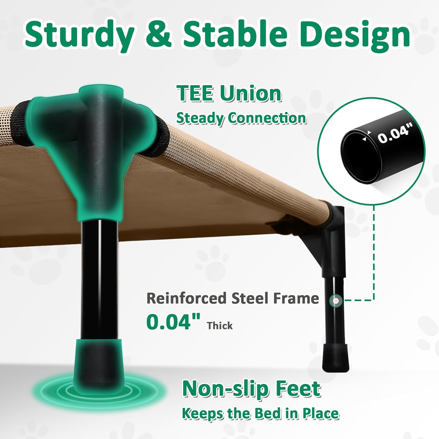 - BREATHABLE TESLIN MESH: This outdoor dog bed comes with breathable and durable Teslin mesh, provides airflow and firm support to relieve joint pressure. Our dog cot bed is suitable for dogs of all life stages, from puppy to the senior