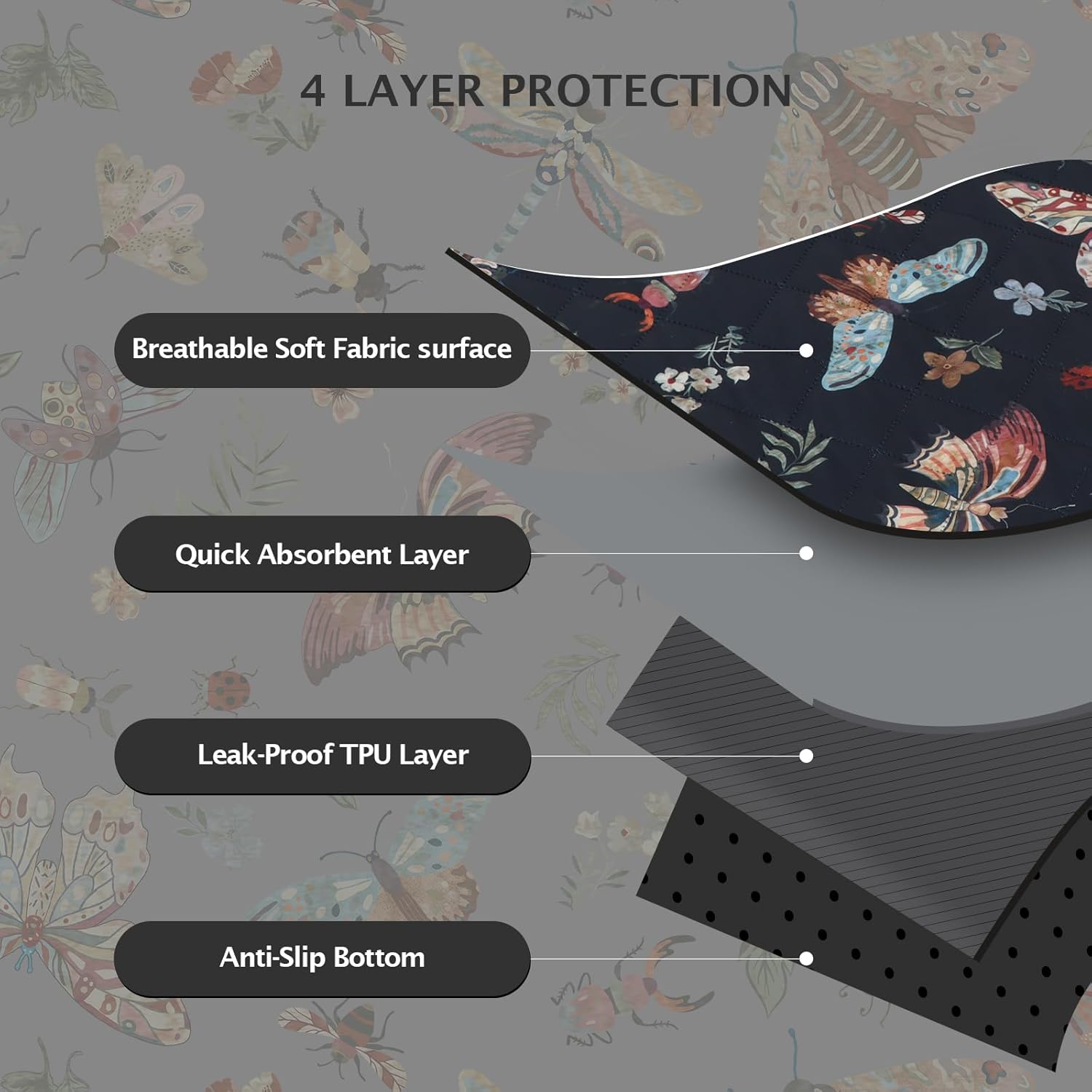 IEUUMLER Washable Pee Pads for Dogs, 2 Pack Insect Pattern Reusable Waterproof Puppy Potty Pads, Non-Slip Absorbent Pet Training Pads for Playpen Crate Bed EU014