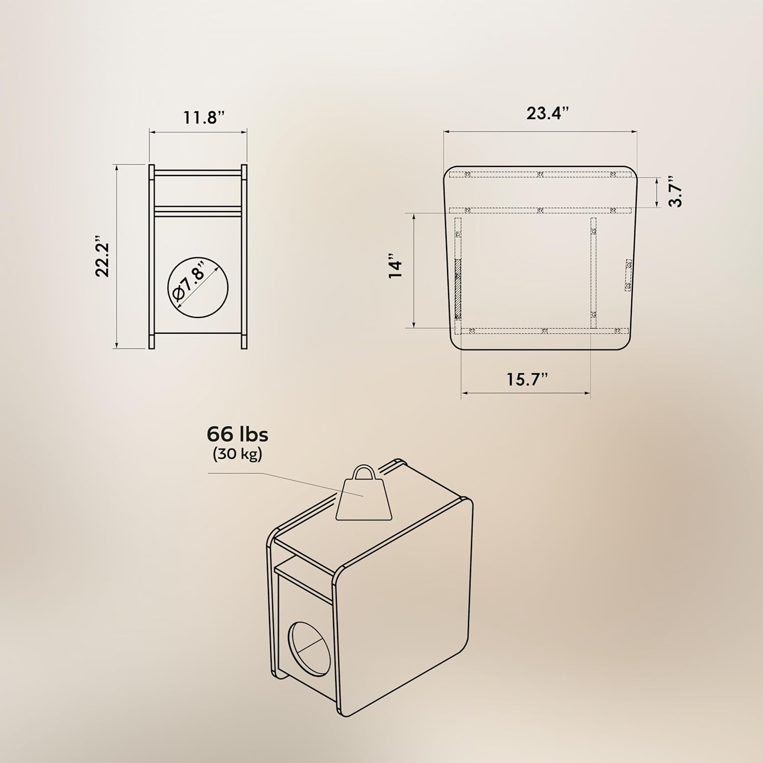- MAKE THE MOST OF THE DUAL-PURPOSE STORAGE SPACE, perfect for storing soft throw blankets, kids’ small toys, or chargers — keeping everyday essentials neatly out of sight. Thanks to the round opening (⌀ 7''), this storage compartment can also serve as a cozy nook for pets like cats or very small dogs, offering them a private hideaway that blends seamlessly into your living space. The inner compartment measures 10.55" W x 14" H x 15.7" D. Pillow not included.