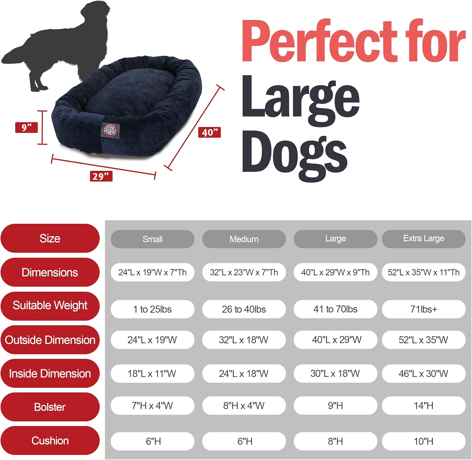Majestic Pet 40 Inch Micro Velvet Calming Dog Bed Washable 40x29x9 (inch) – Cozy Soft Round Donut Dog Bed with Spine for Head Support - Pet Bed Large – Navy (2025)