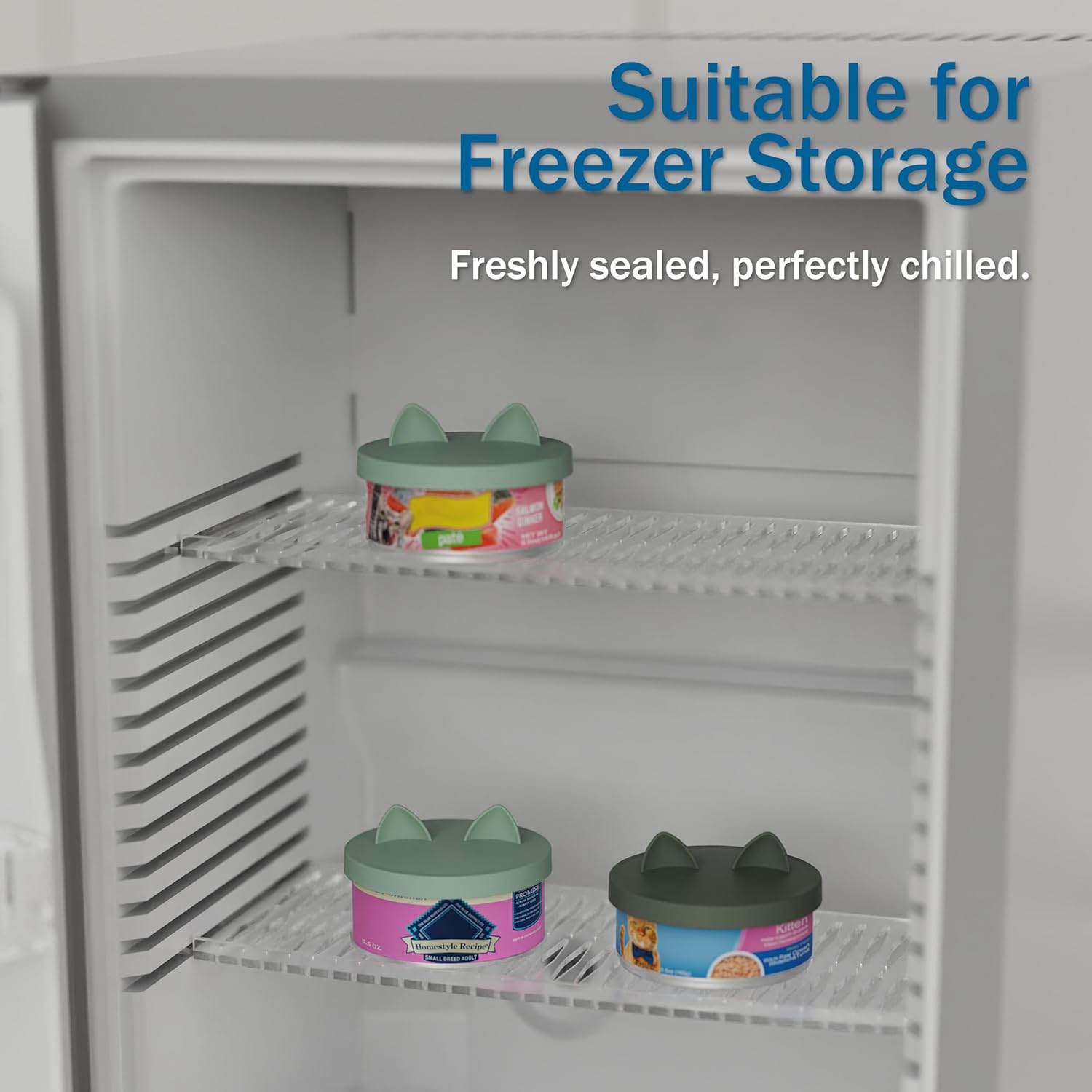 OHMO 2 Pack Pet Food Can Lids, (3.3 in / 85mm) Silicone Pet Food Can Lids Covers for 5.5 oz Cat and Dog Food Cans, Camo&Light Green