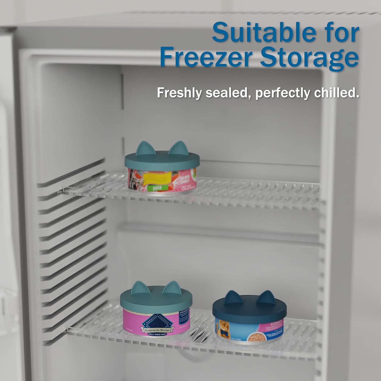 OHMO 2 Pack Pet Food Can Lids, (3.3 in / 85mm) Silicone Pet Food Can Lids Covers for 5.5 oz Cat and Dog Food Cans, Dark&Light Blue