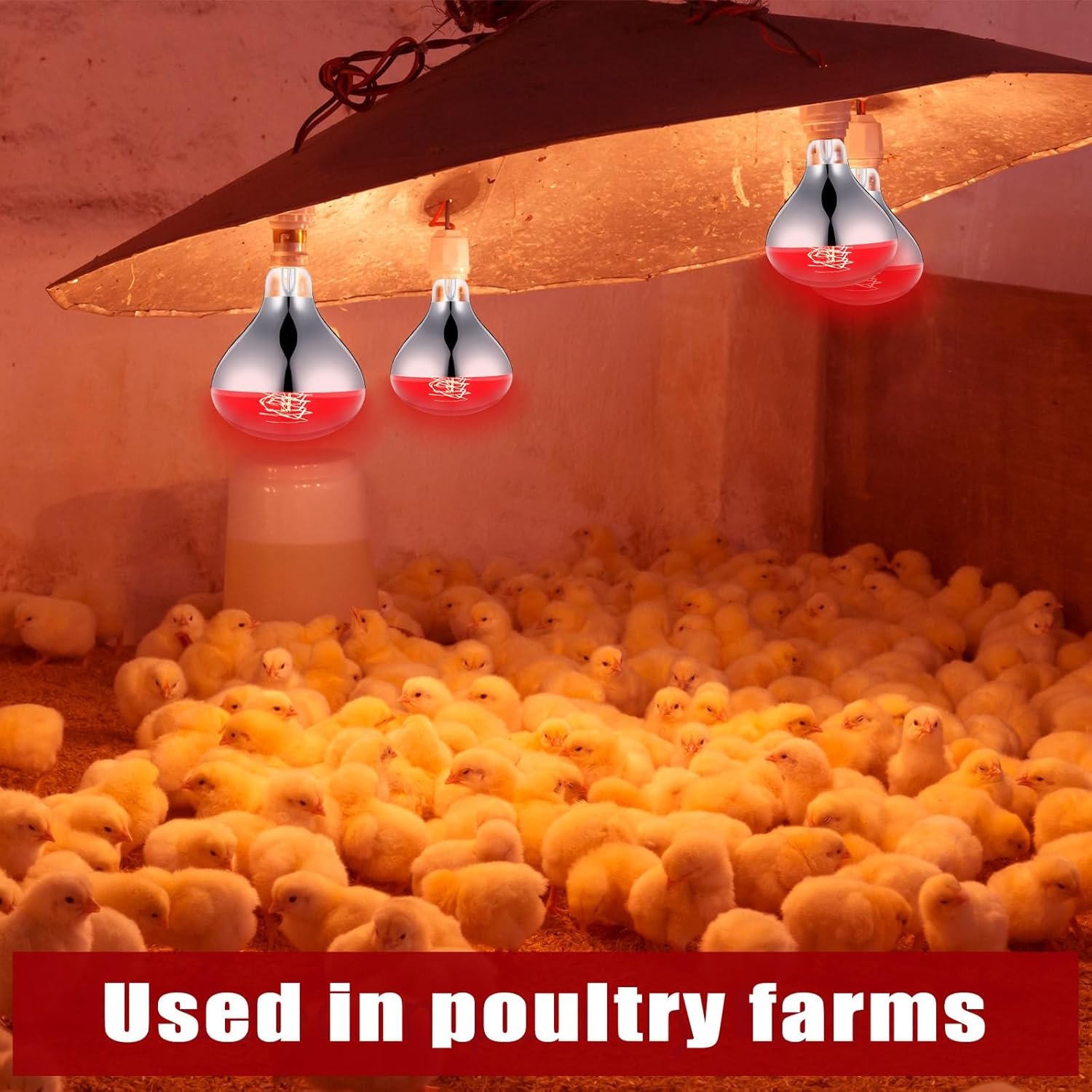- Suitable Parameters: the heat lamp for chickens comes with a parameter of 250 watts and 120 volts, making them suitable for providing a warm and necessary environment for baby chicks, turtles, lizards, and other pets; The parameter of these bulbs is carefully designed to ensure that they can provide the right amount of heat without overheating or causing discomfort to your pets; And the Kelvin color rating for bulbs is 2700k