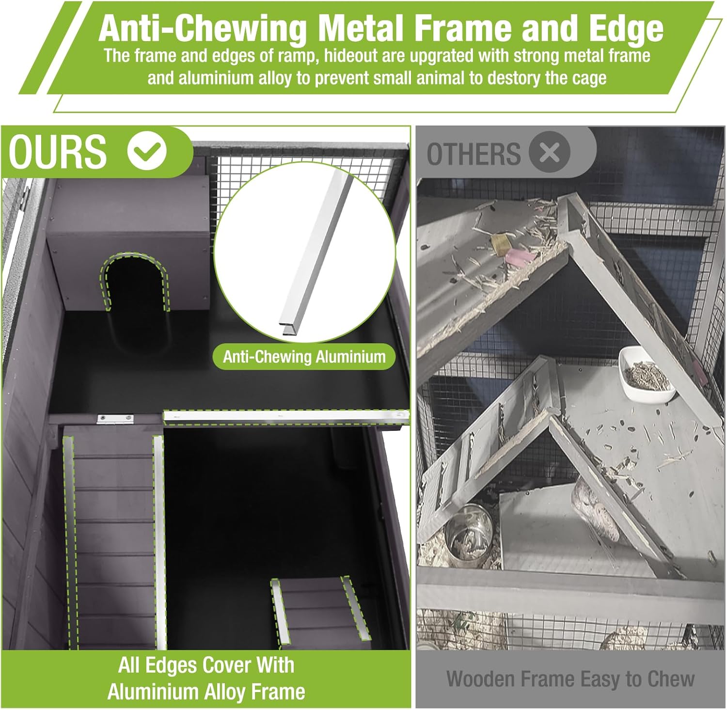 GUTINNEEN Guinea Pig Cage Hamster House with Anti-Chewing Metal Frame Rat Cage with Wheels and Storage