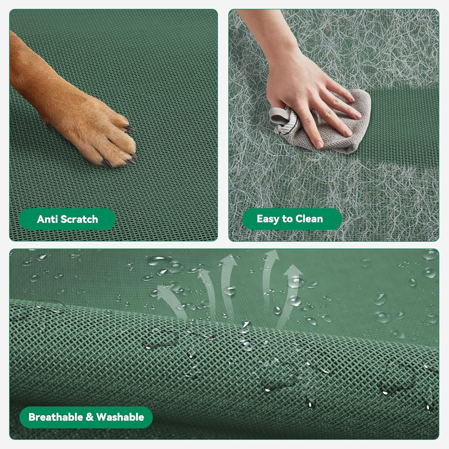 - 【 Easy rinsing & wiping】 The Teslin mesh fabric of used in the outdoor dog bed is both durable and easy to clean. It offers breathability and water-permeability, as well as resistance to UV damage, making our raised dog bed suitable for both indoor and outdoor use. Additionally, the fabric of outdoor dog bed can be easily rinsed, wiped, or machine washed, and mesh of outdoor dog bed dries quickly without leaving any stains and odors.