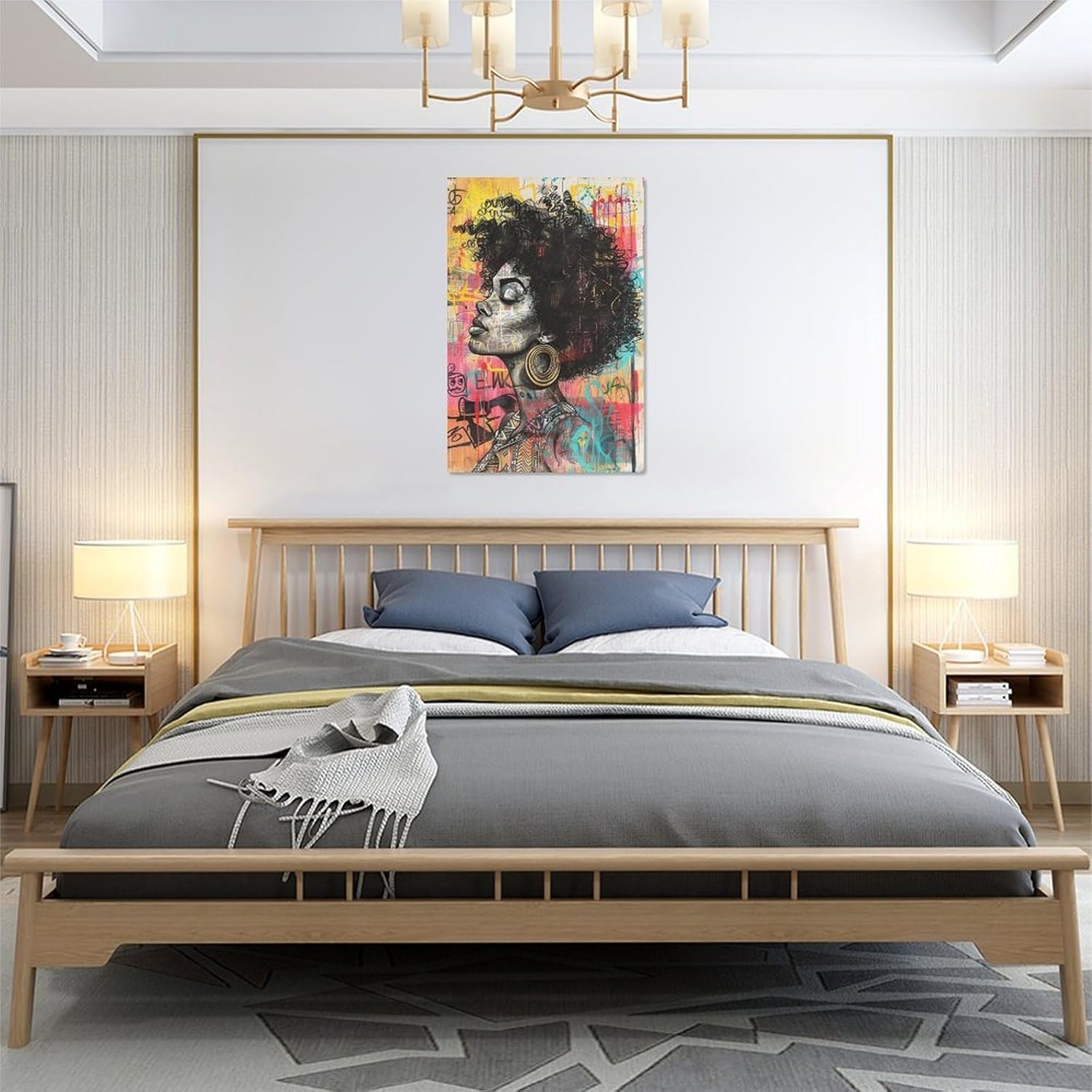Quorin African American Wall Art Banksy Graffiti Black Woman Pictures Black Girl Wall Decor Canvas Print Painting Artwork for Bathroom Living Room Bedroom 16"x24"