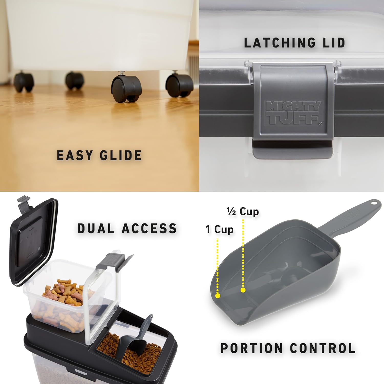 Mighty Tuff 3 Piece Airtight Dog Food Storage Container, Up to 36 lbs, with 5 lbs Dog Treat Container and Portion Scoop β BPA Free Airtight Pet Food Bin on Wheels