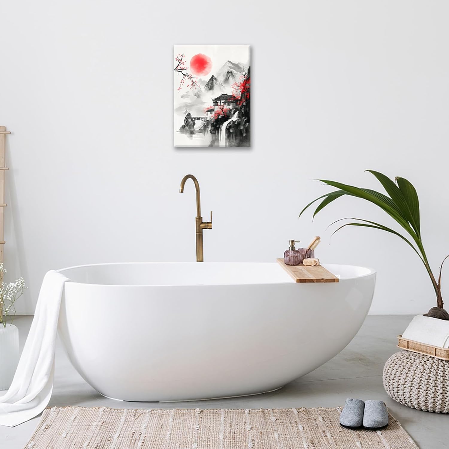 Japanese Wall Art Canvas Asian Nature Wall Decor Prints Framed Painting Mountain Landscape Pictures Gifts Artwork for Bathroom 12"x16"