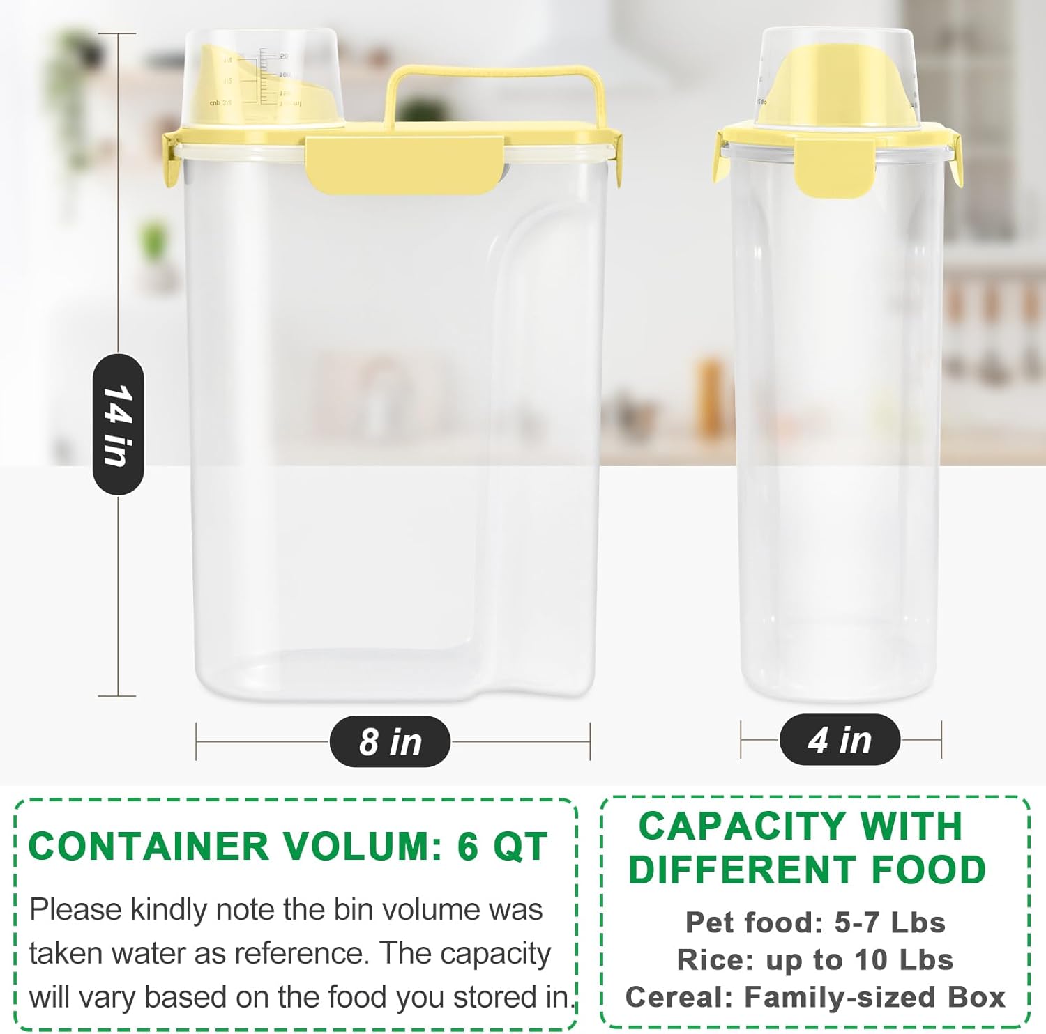 TBMax Pet Dog Cat Food Storage Container 5 to 7 lbs, Airtight Bird Seed Container with Large Spout & Cup, Cat Food Storage Dispenser for Kibble Dog Treat - Light Yellow