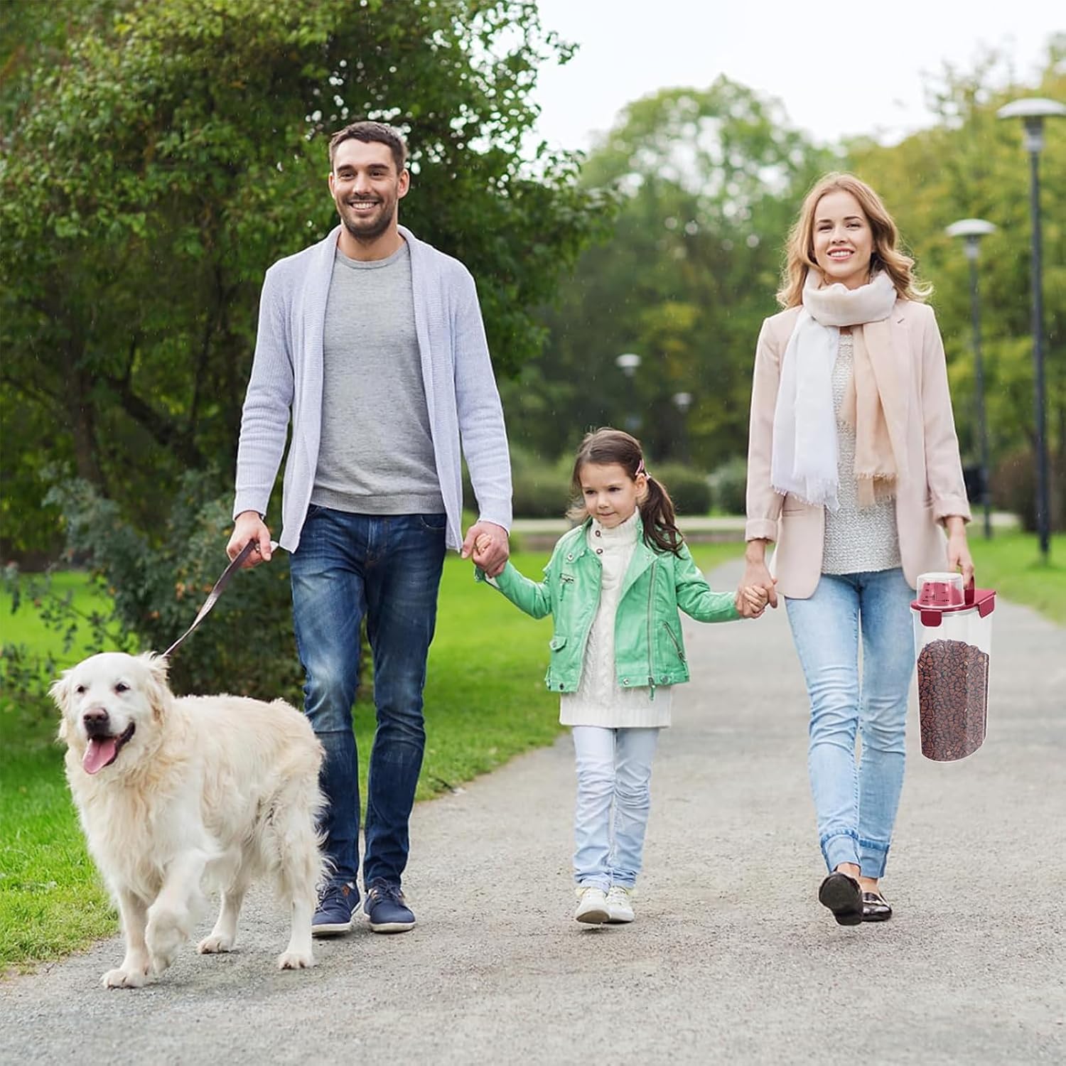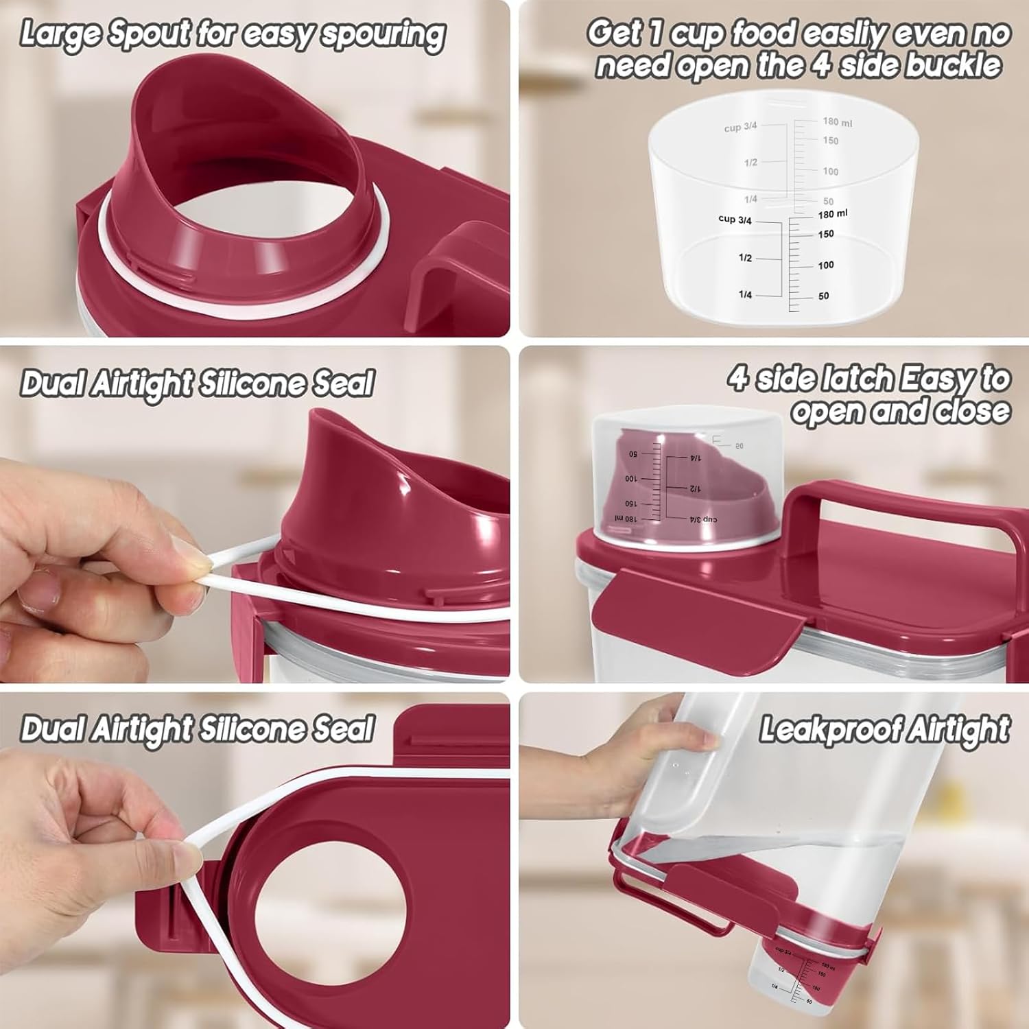 - WHAT YOU GET ? The dog food storage container comes with a 1-pack airtight pet food storage container with a clear measuring cup and an upgraded large spout for easy pouring of pet food at any time. This dog food storage containers can be a gift The perfect gift for any home.