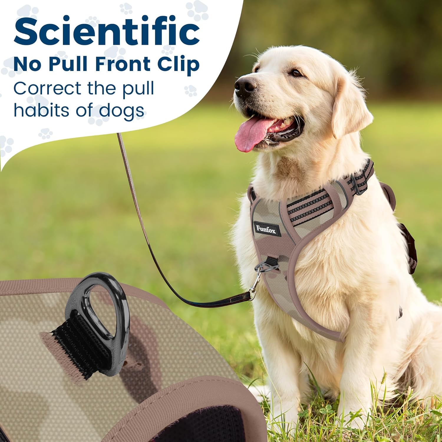 Funfox Dog Harness No Pull, Adjustable Pet Vest Harness, Super Soft Material with Vertical Handle Easy Control, Reflective Night Walking, 2 Leash Clips for Medium Sized Dogs, Camo Brown, M