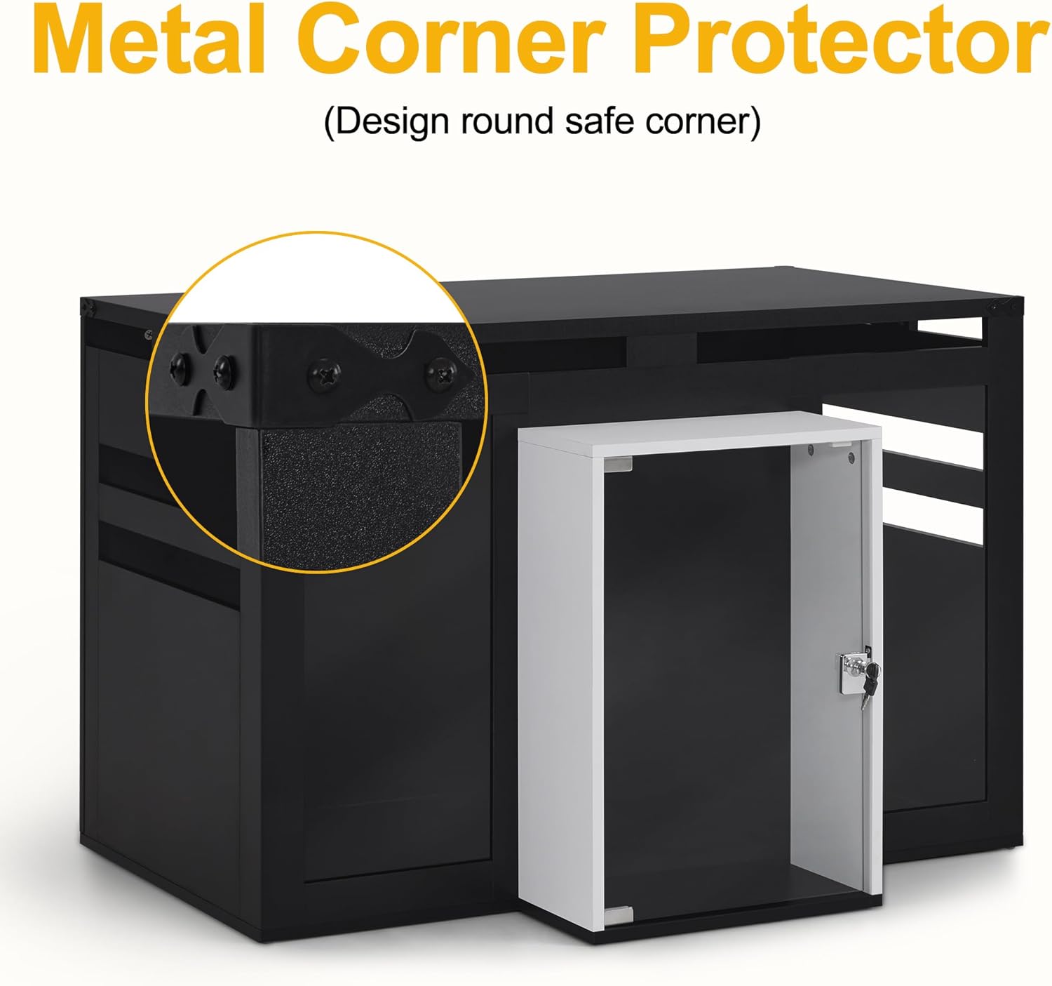 - Metal Corner Protectors: The dog crate end table features metal protectors to safeguard the corners from damage