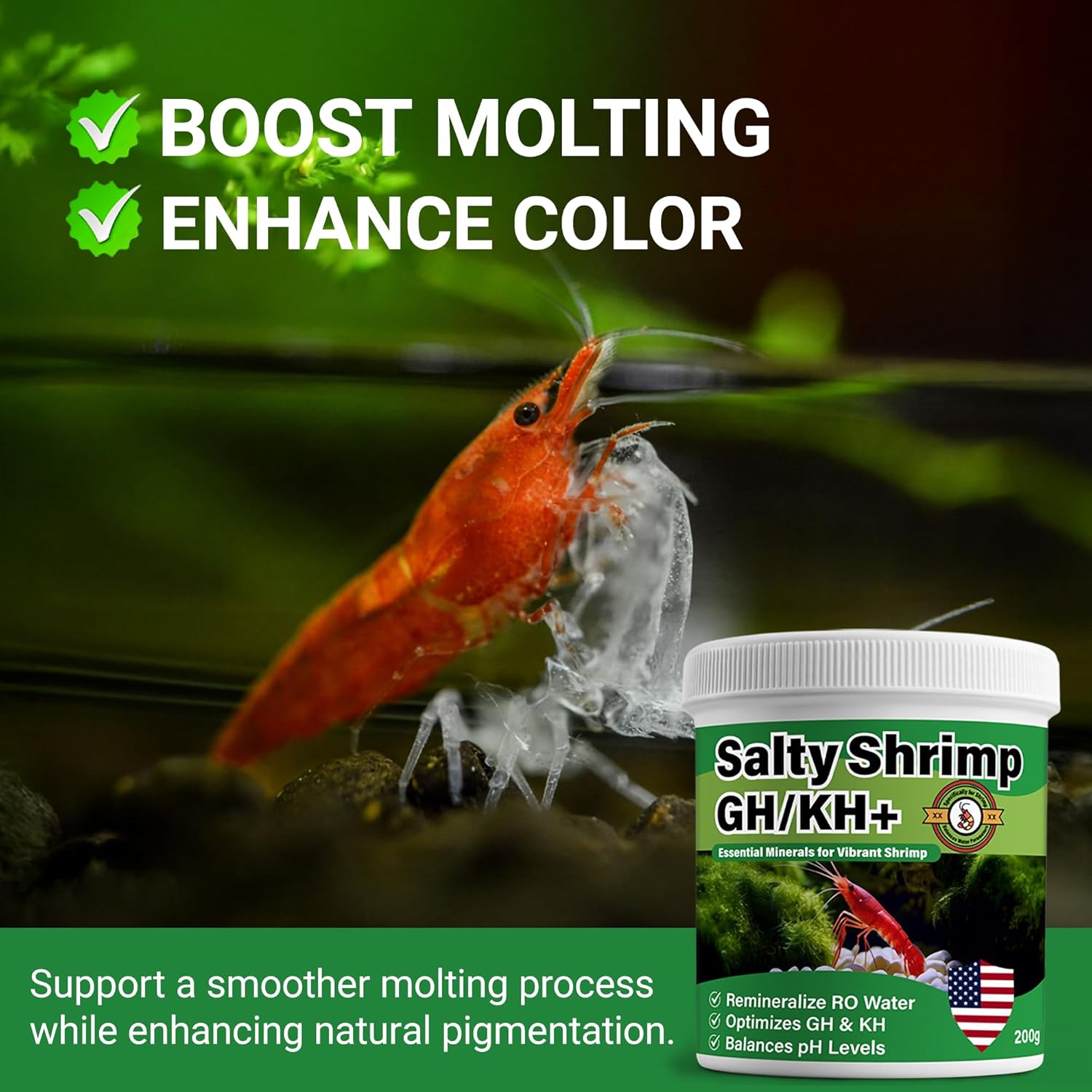 Salty Shrimp GH/KH+ 200G, Keep Your Shrimp Alive, Boost Breeding Healthy & Remineralize RO Water, The Shrimpies Stopped Dying Once You Dripped Our GH/KH+ in with RO Water
