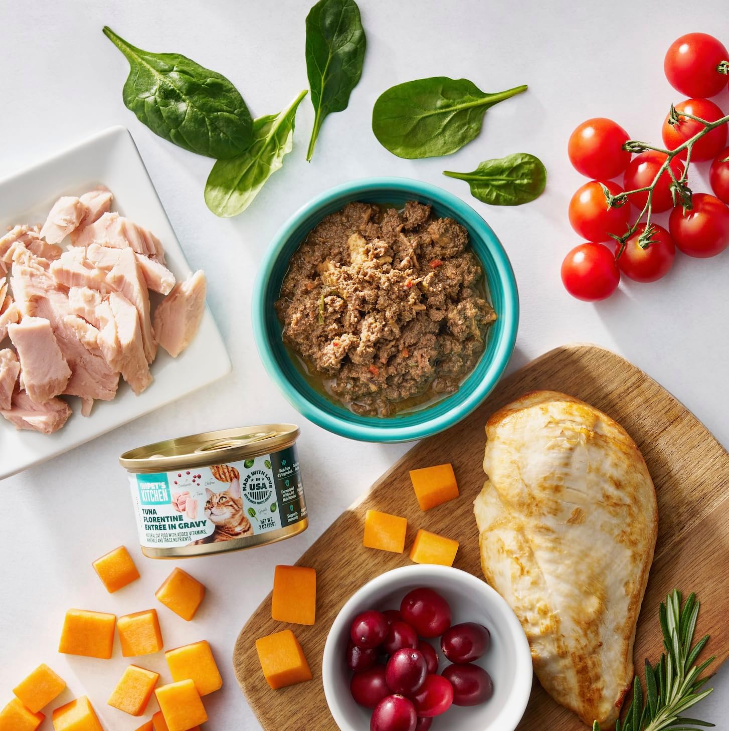 YOUR PET'S KITCHEN Canned Wet Cat Food, Tuna Florentine Entrée in Gravy - 3 oz Cans (Pack of 24), Made in The USA with Real Tuna
