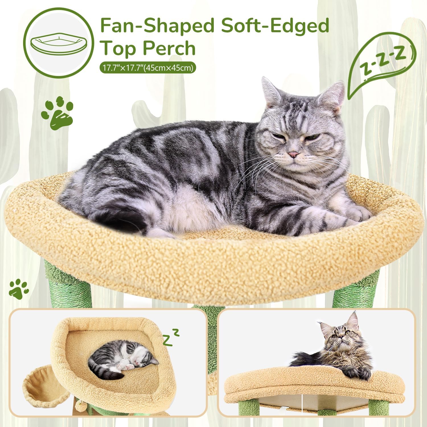 - Large Top Perch platform: The fan top platform measures 17.71 inches x 17.71 inches, providing ample space for cats to stretch, play or quietly observe the surrounding environment. The height of 51 inches is perfect for satisfying cats' instinct to observe from a high place, and the soft padding on the edge enhances safety and comfort