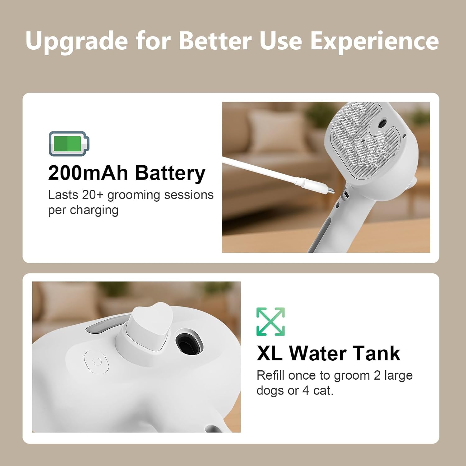 - Cool/Warm Mist Customization--Add room-temperature or warm water to the brush—no heating function. The mist adjusts to your water’s temperature to soothe skin, reduce static, and detangle fur. Mix with your favorite pet conditioner for extra shine!