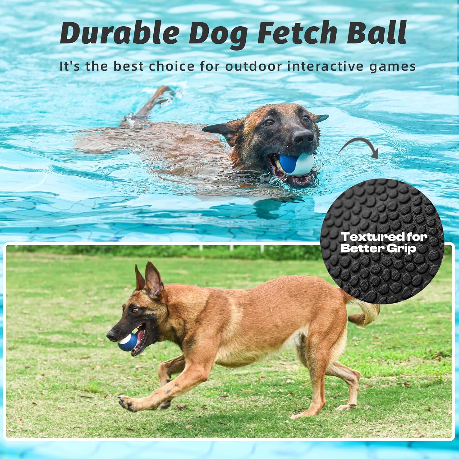- High Bounce & Floating Fun – This dog ball toy is made from premium natural rubber that delivers a high bounce fetch ball on land and floats in water , making it perfect for outdoor fetch, beach trips, or pool play.