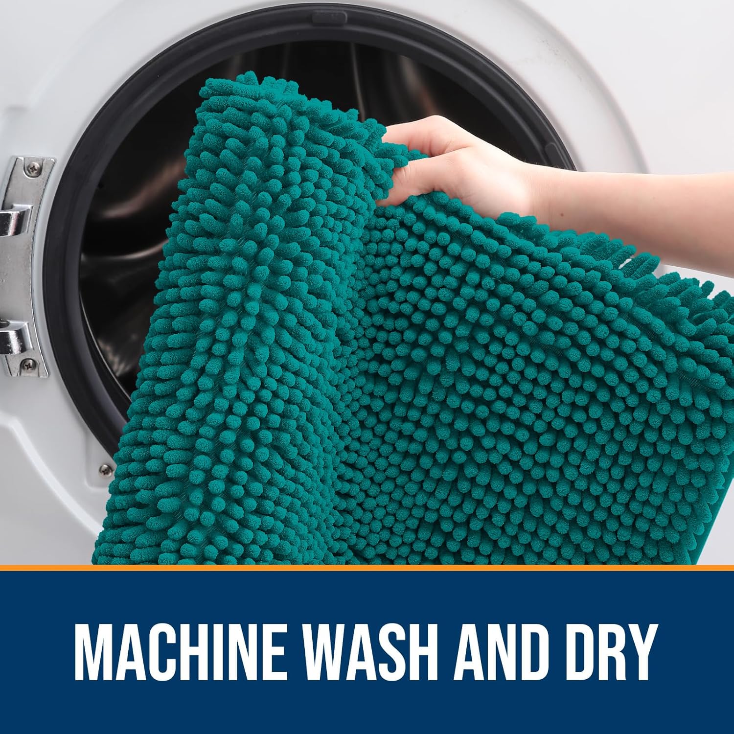 OLANLY Dog Door Mat for Muddy Paws 24x16, Absorbs Moisture and Dirt, Absorbent Non-Slip Washable Doormat, Quick Dry Chenille Mud Mat for Dogs, Entry Indoor Entryway Carpet for Inside Floor, Lake Blue