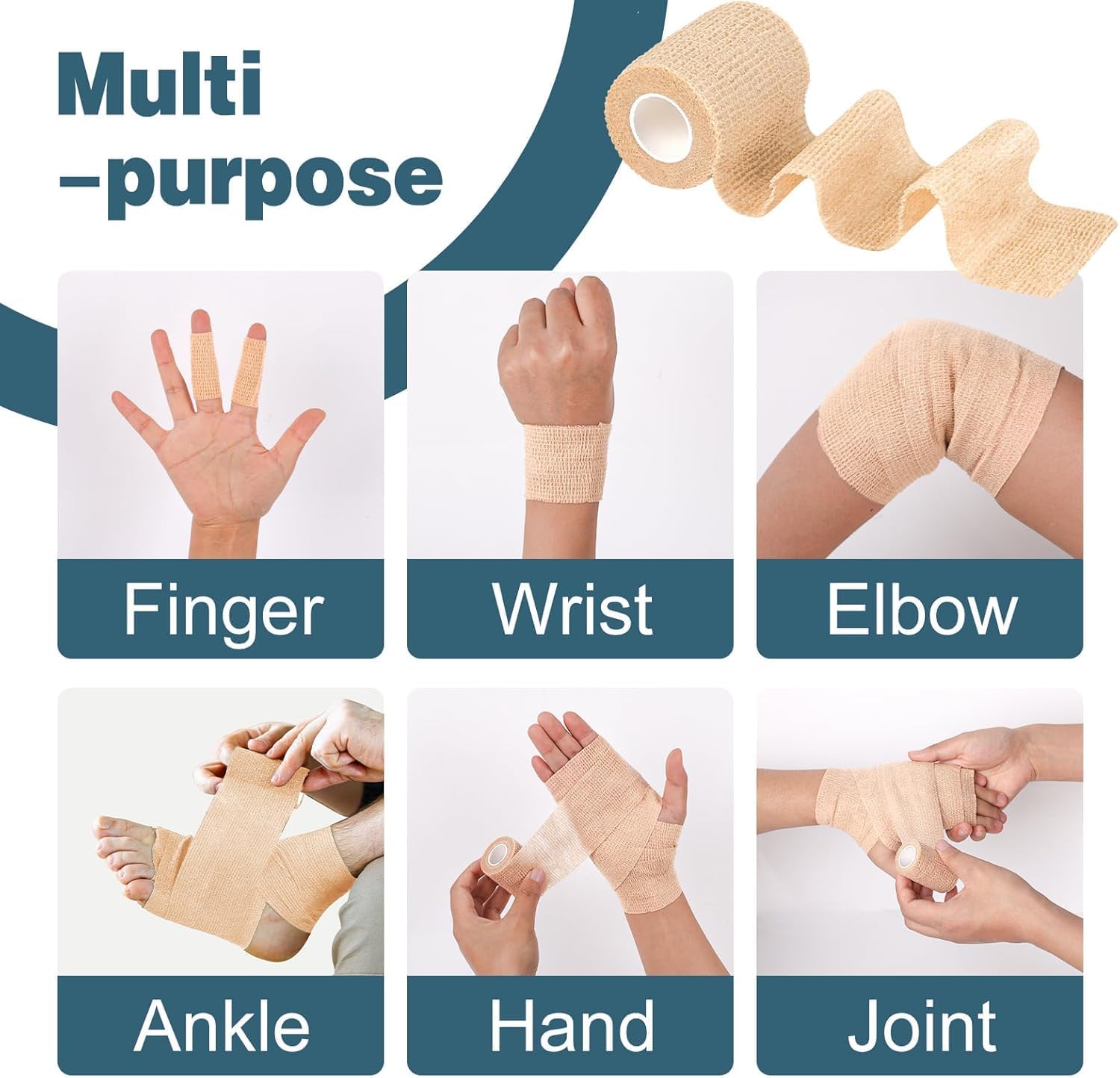 AZEN 120 Pack Self Adhesive Bandage Wrap, 2" X 5 Yards Elastic Cohesive Bandage Wrap, Skin Color Athletic Tape, Vet Wrap, Ankle Tape