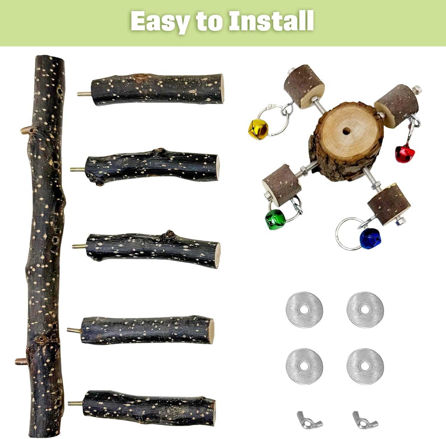 - Easy to Install: BNOSDM Bird perches for parakeets are easy to install just position a parrot stand perch toy at your desired height inside the cockatiel cage and secure it by tightening the two wing nuts. They can be installed in any cage