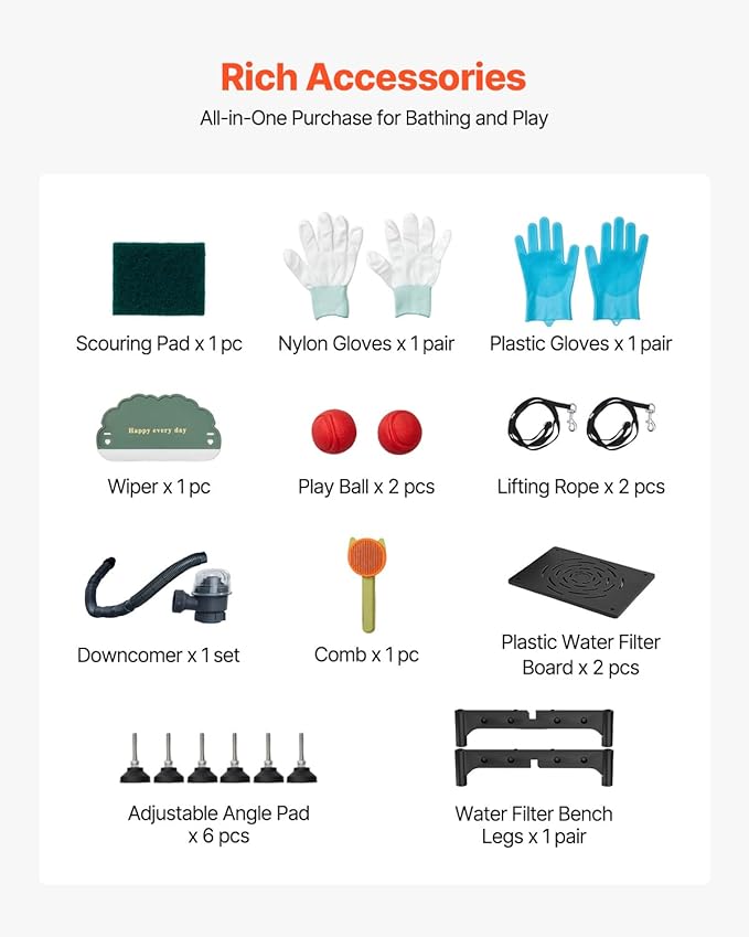 • Complete Accessories: This pet bath station comes with a showerhead, faucet, and a direct connection to a home hose, built for durability. It also includes a play ball, brush, and gloves, ensuring your pet enjoys a full and enjoyable bathing experience