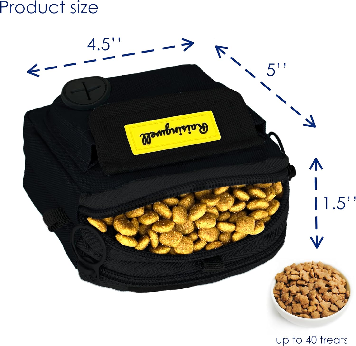 Dog Treat Pouch for Pet Walking and Training with Clicker, Poop Bags, and Three Bags Design Small Fanny Zipper Pack Holder for Puppy Snack Dispenser Kit for Leash and Outdoor Use (Black)