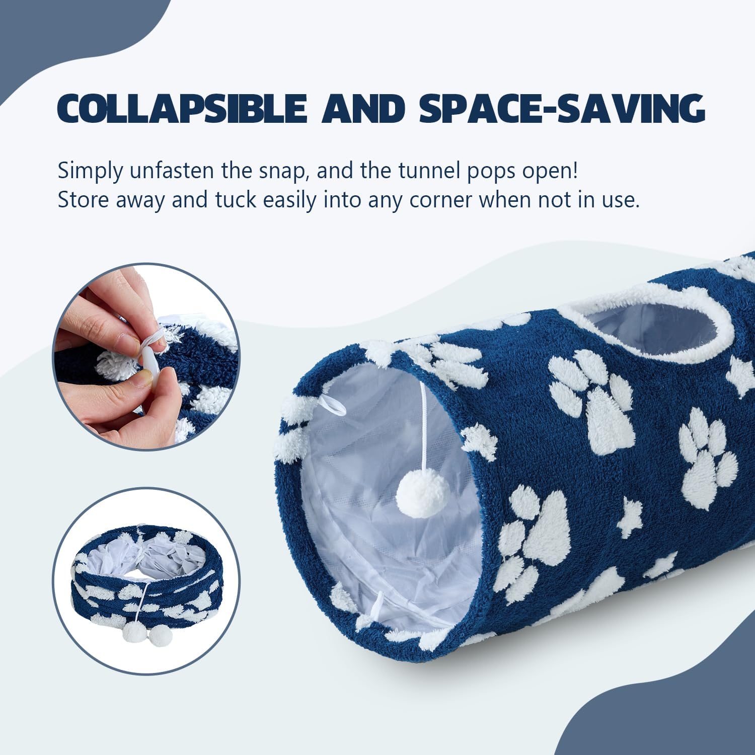 - Stylish Jacquard Pattern: Its stylish design with cute jacquard flower or paw patterns seamlessly complements your decor while inviting pets to explore, merging practicality with visual charm. Beyond being a cat tunnel, it doubles as a chic home accessory that add a cheerful, stylish touch to your home