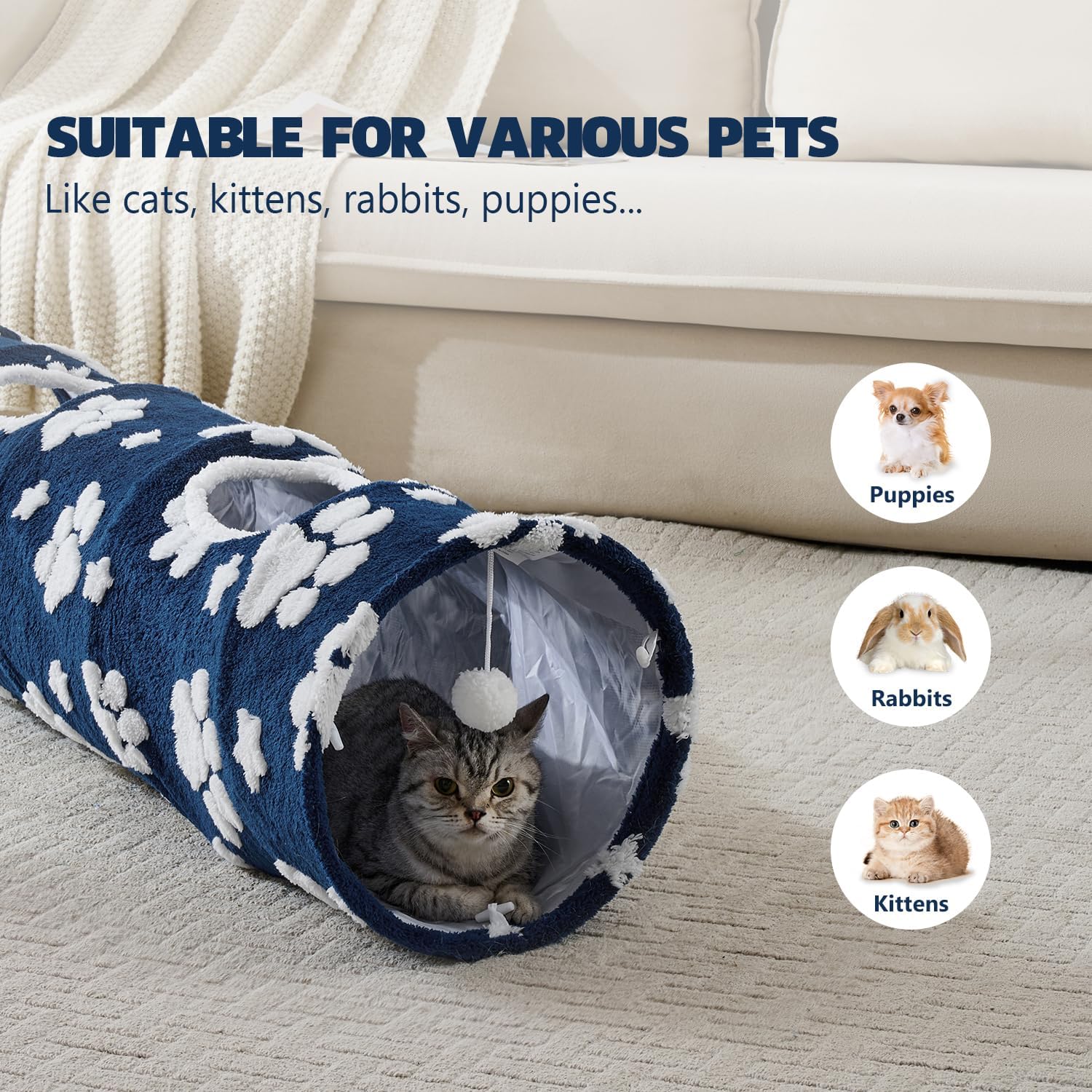 - Pet Play Paradise: Designed as a pet paradise, the tunnel challenges cats to sprint through its straight shape, leap out of peekaboo holes, or engage in endless hide-and-seek games. The spacious interior accommodates adult cats, kittens, and small pets like rabbits, turning playtime into a thrilling workout