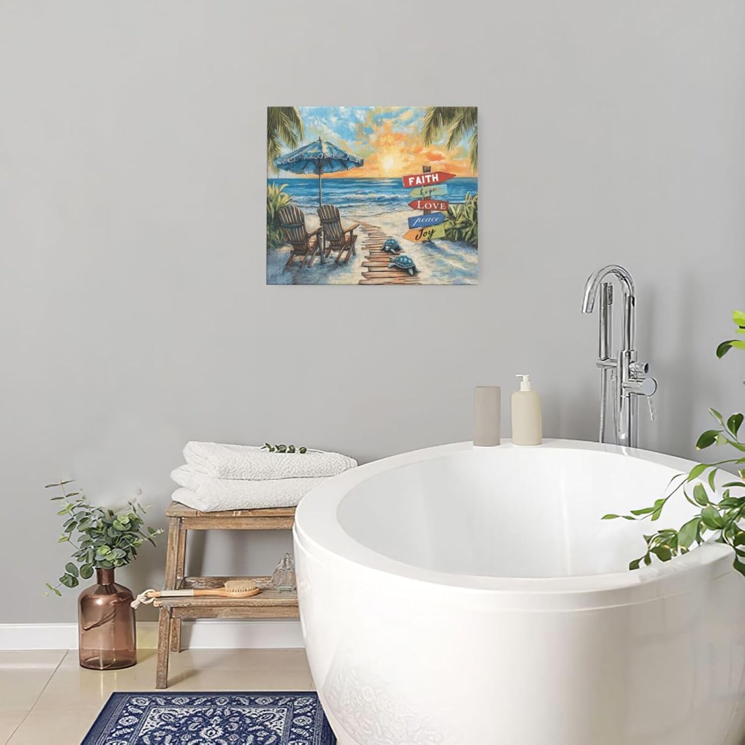 Beach Ocean Bathroom Pictures Wall Art, Seaside Coastal Bathroom Wall Decor, Sunrise Framed Painting Canvas Artwork for Bedroom Living Room Decorations 24"L x 20"W