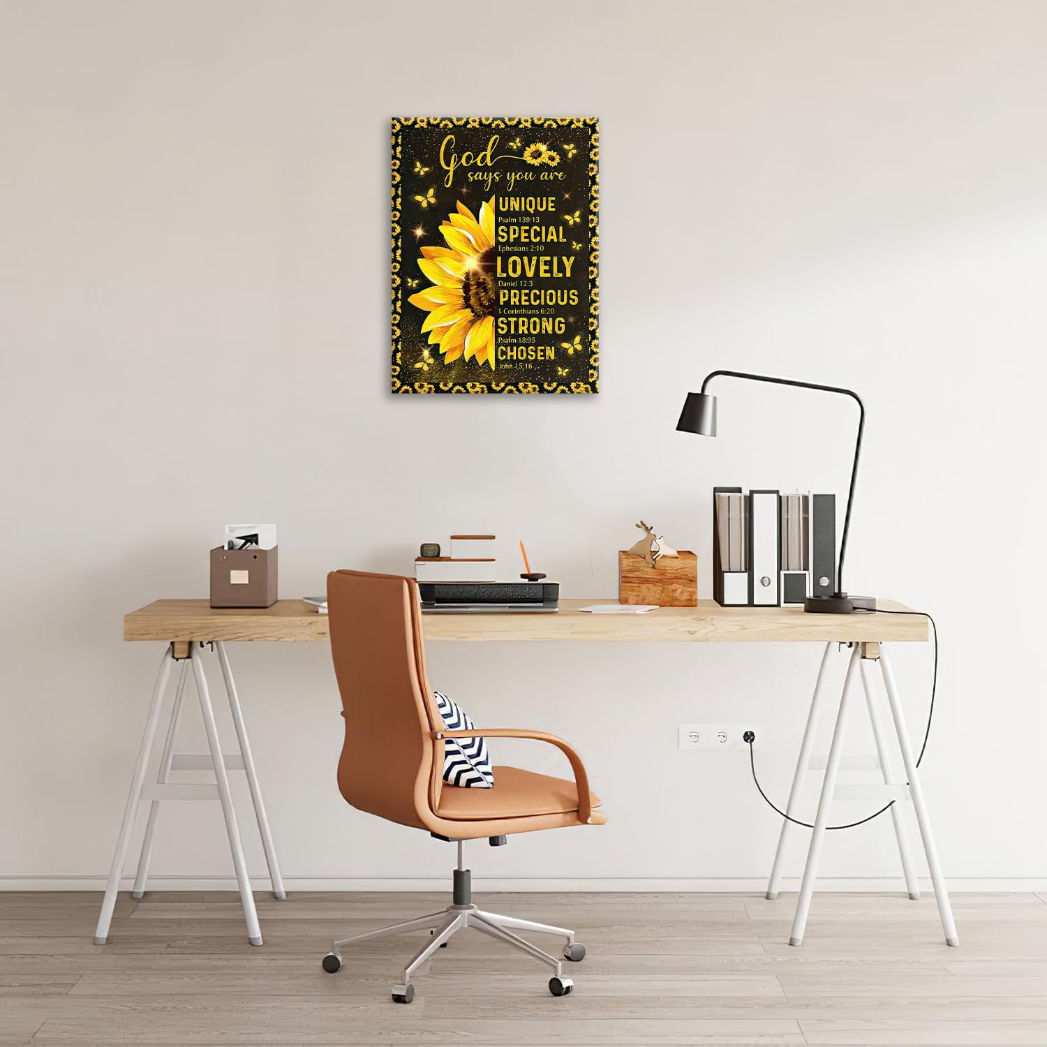 Christian Sunflower Bathroom Pictures Wall Art, Bible Verse Bathroom Wall Decor for Bedroom Office Wall Decorations for Bathroom Living Room Painting Artwork Modern Poster Prints 16"L x 12"W
