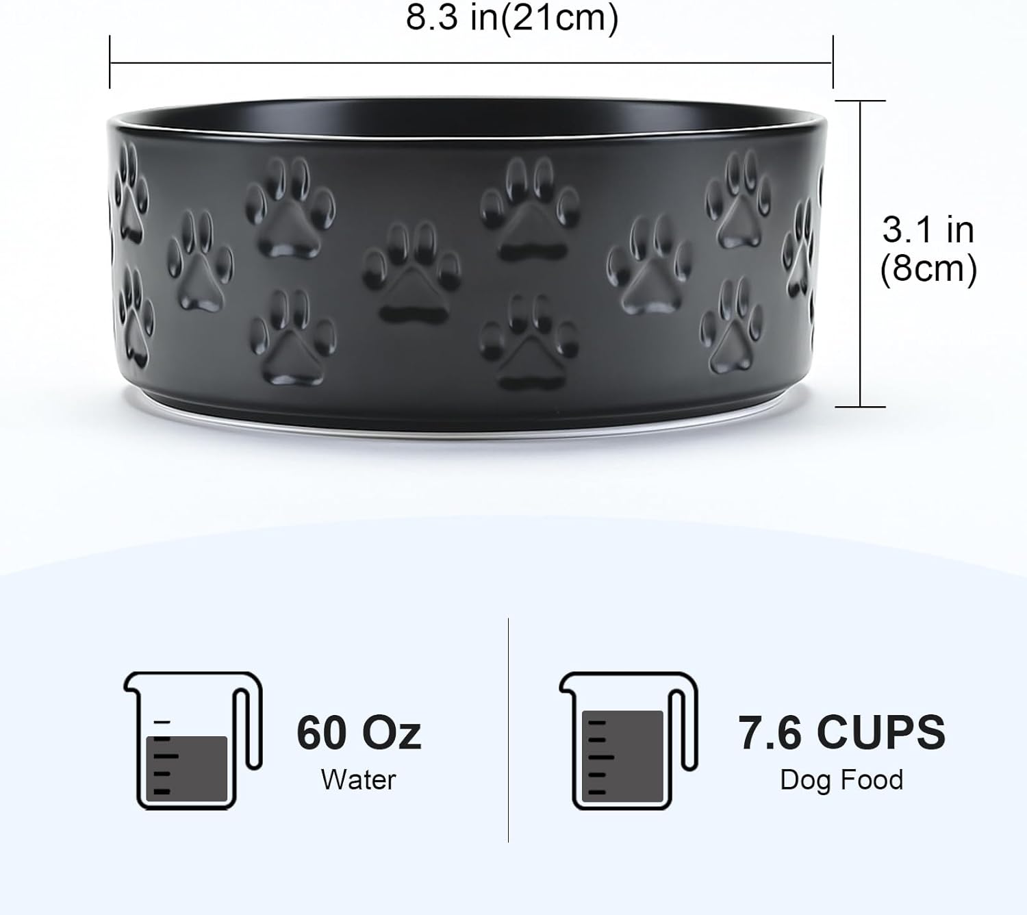 - Lead-Free Ceramic Pet Bowls - 8.3" Ceramic Dog Bowls with 60 OZ Capacity Fired at high temperature with a food‑grade glaze that contains zero lead or cadmium, these non‑porous bowls help keep meals tasting fresh, rinse clean in seconds, and both MICROWAVE SAFE and DISHWASHER SAFE