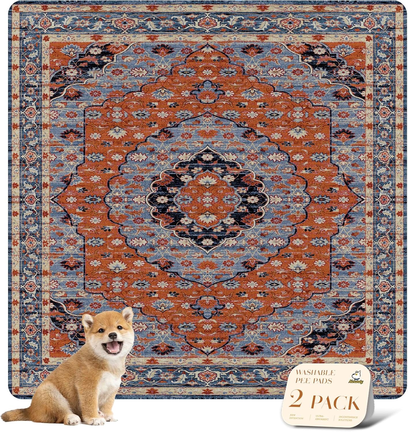 nunubaby Washable Pee Pads for Dogs, Stylish, Non-Slip and Leak-Proof Pee Pads. Reusable Potty Pads for Dogs for Crates and Floors.(Red/Floral, 54" x54")
